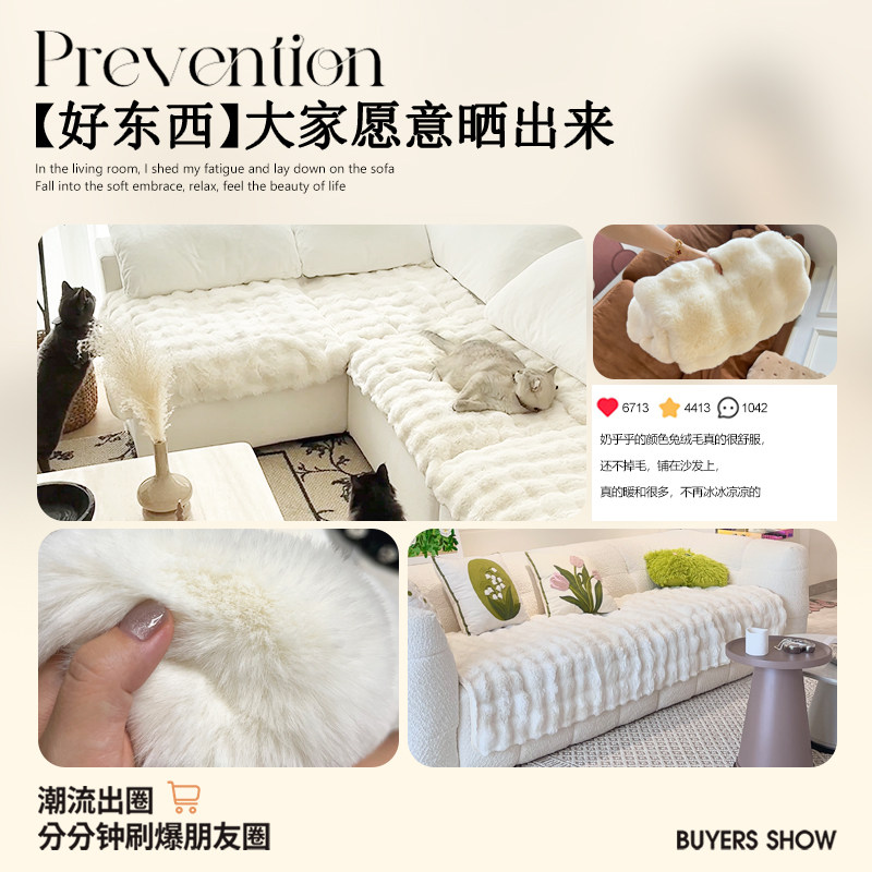 【网红泡泡绒】仿兔毛绒沙发垫秋冬款加厚坐垫子防滑冬季沙发盖布