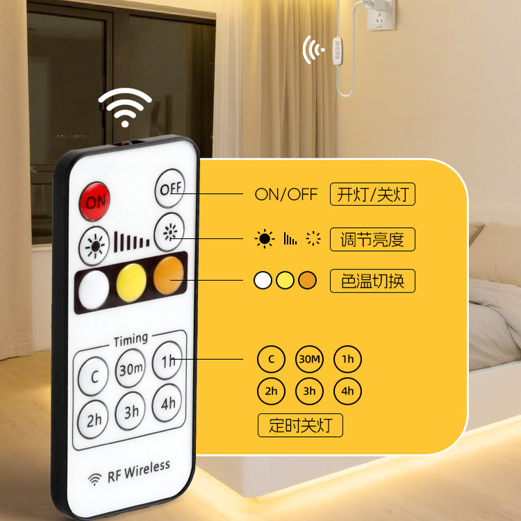 5V三色遥控灯带床头氛围无线开关定时led灯条可调亮度usb小夜灯