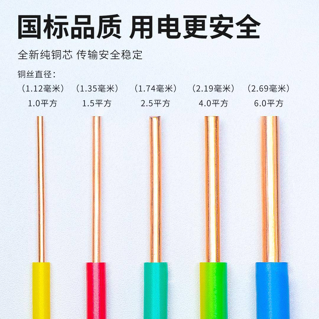国标BV家用电线1/1.5/2.5/4/6平方单股铜芯电线足方10米散剪