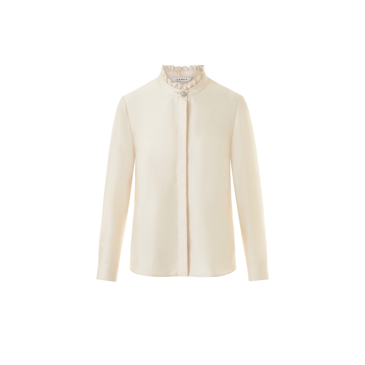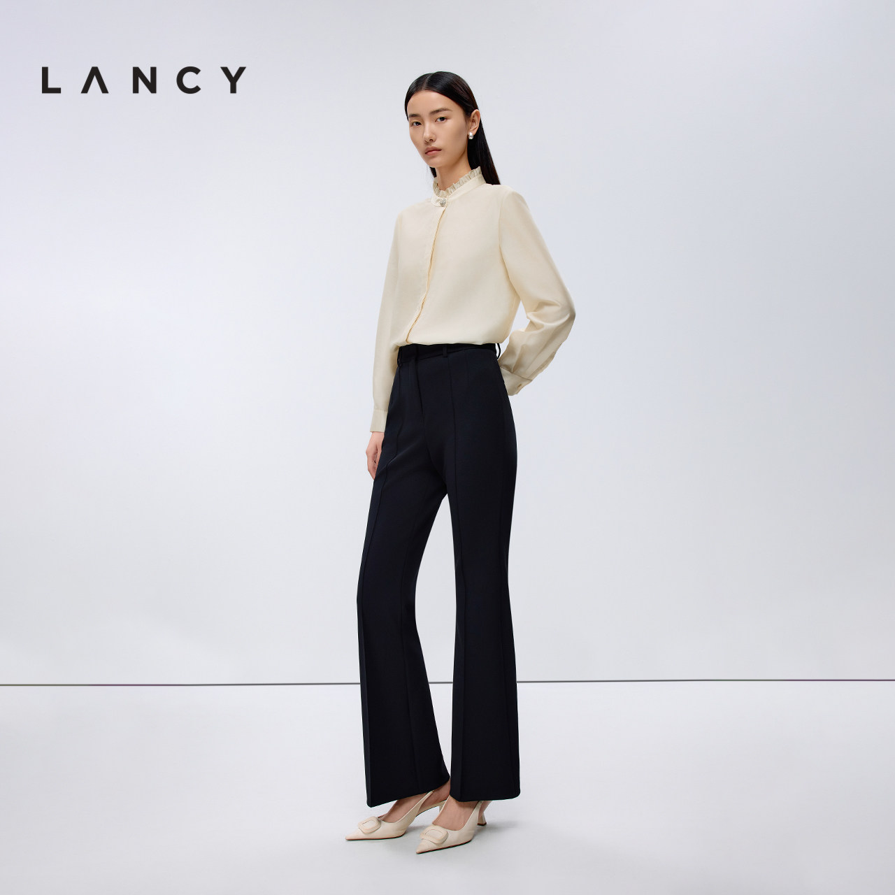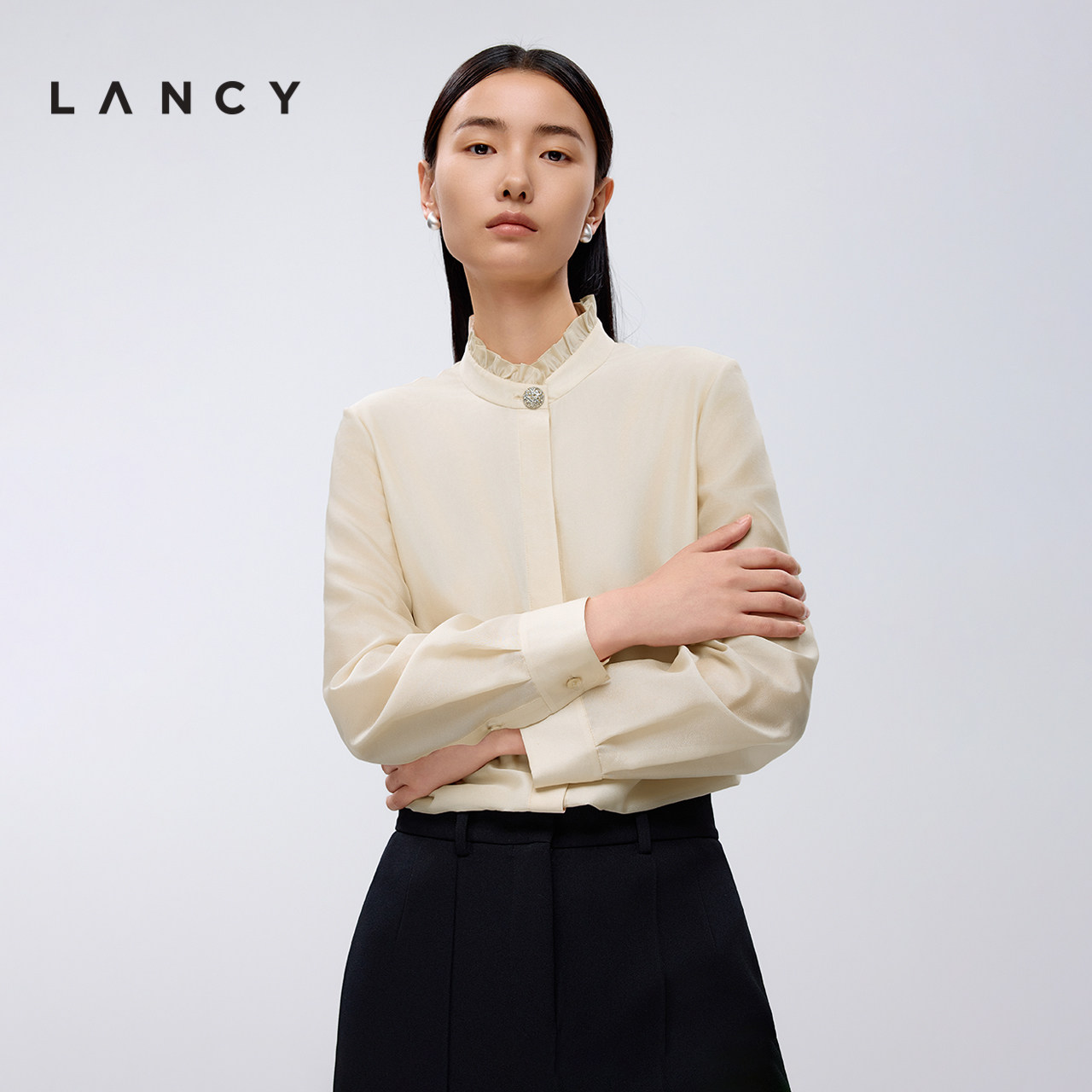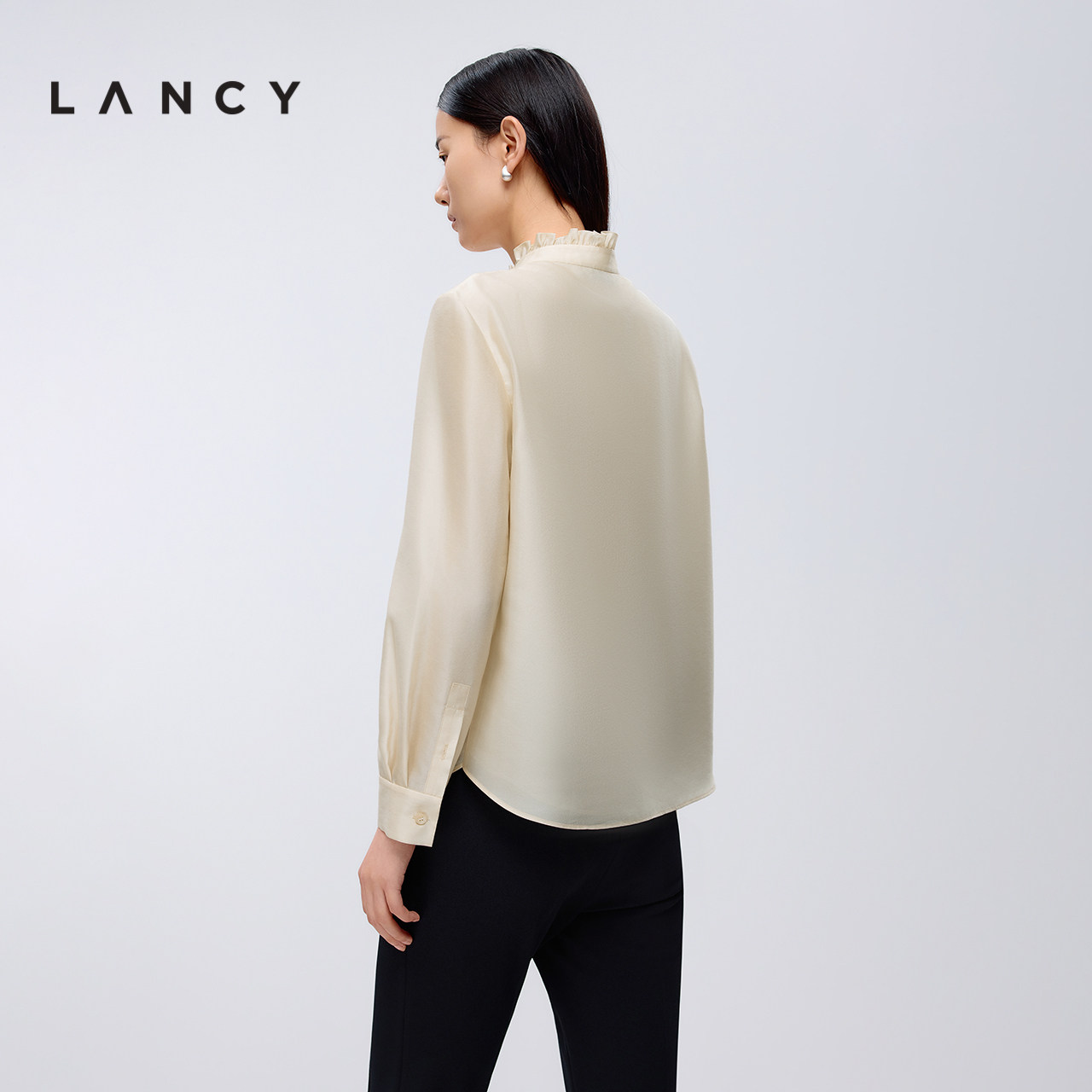 LANCY/朗姿2025年秋新款法式花边立领衬衫女气质优雅长袖衬衣上衣