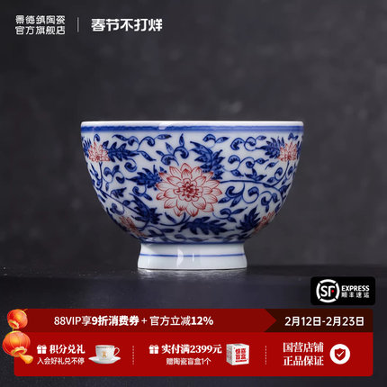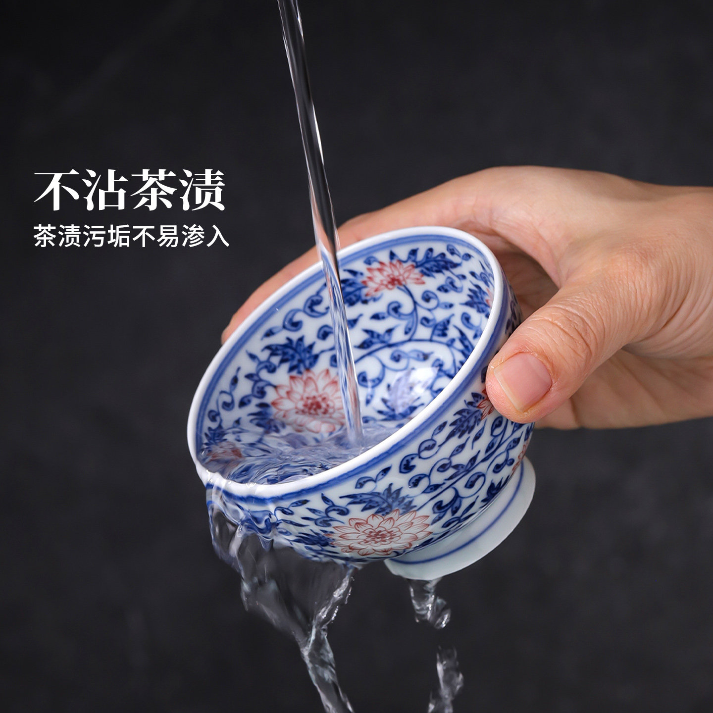 景德镇官方陶瓷柴窑青花釉里红功夫茶杯个人专用喝茶主人杯茶具