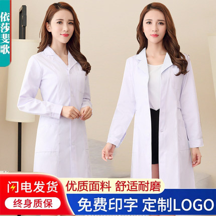 白大褂长袖医生服女夏季薄款短袖实验服学生美容院师工作服护士服