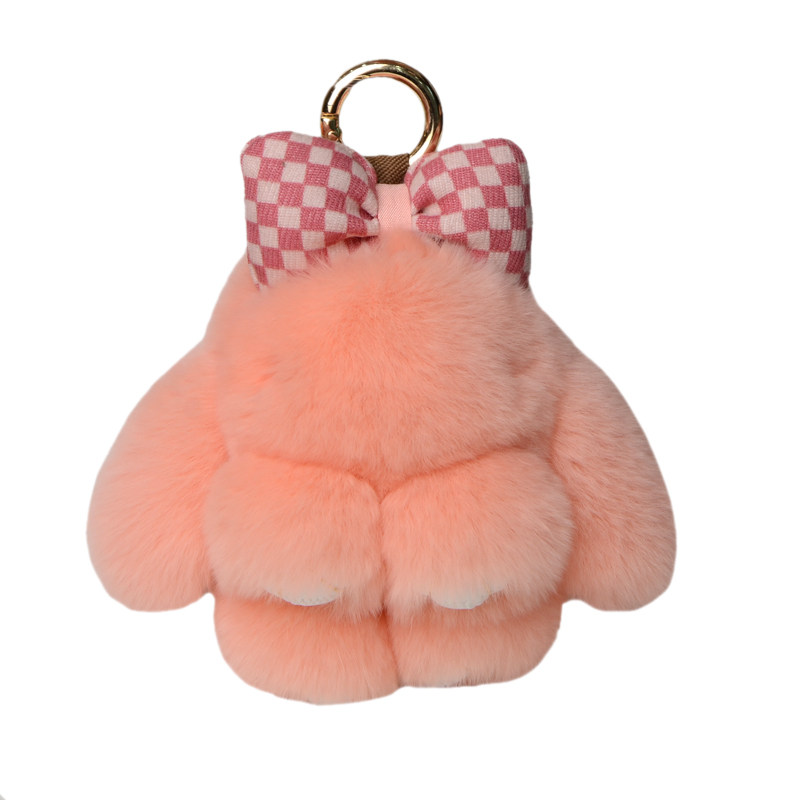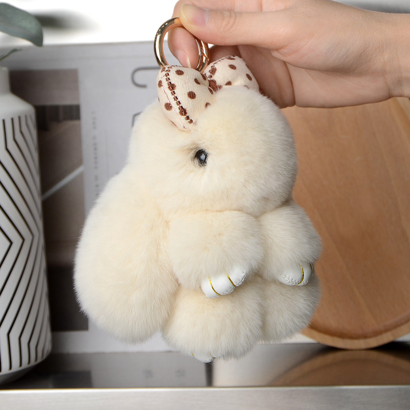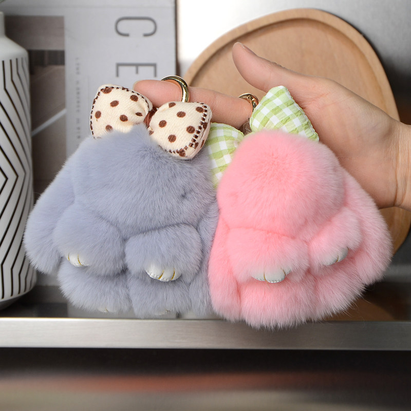 可爱真獭兔毛蝴蝶结小兔子汽车钥匙扣挂件ins毛绒公仔书包包挂饰