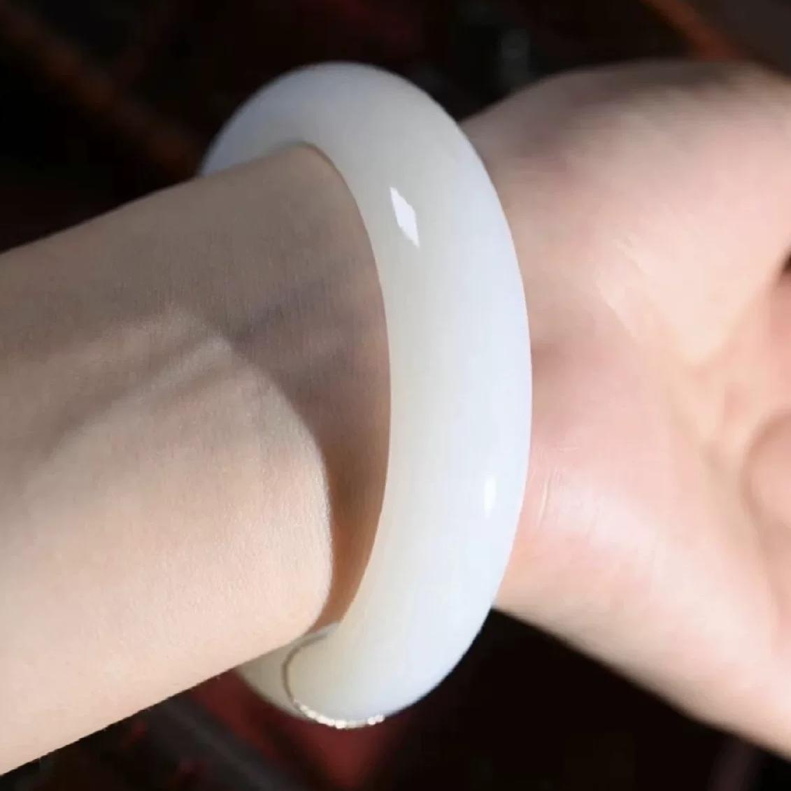 新疆白玉手镯正品少女款旺夫玉镯子天然玉石百搭送女友7