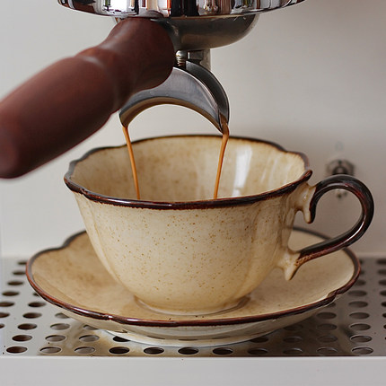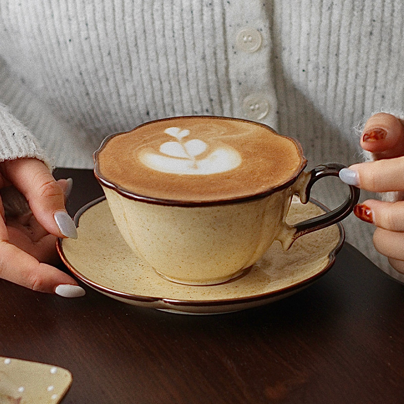 胡桃集市中古风咖啡杯碟焦糖棕拿铁拉花杯芝麻点复古下午茶杯礼物