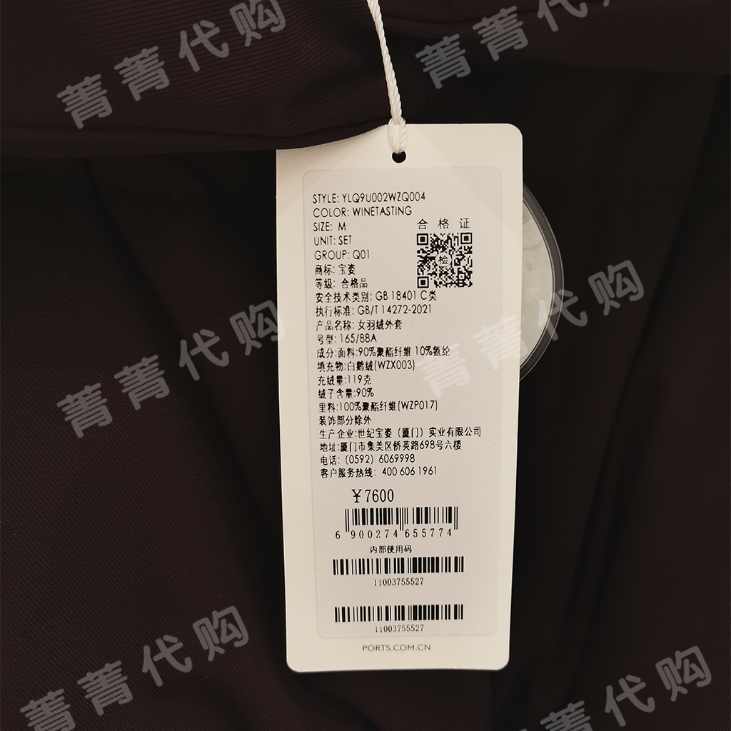 PORTS宝姿国内专柜正品代购2024羽绒服外套YLQ9U002WZQ004 7600