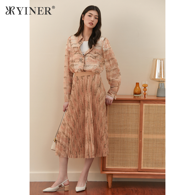 YINER音儿女装秋季网纱蕾丝绣花长袖衬衫