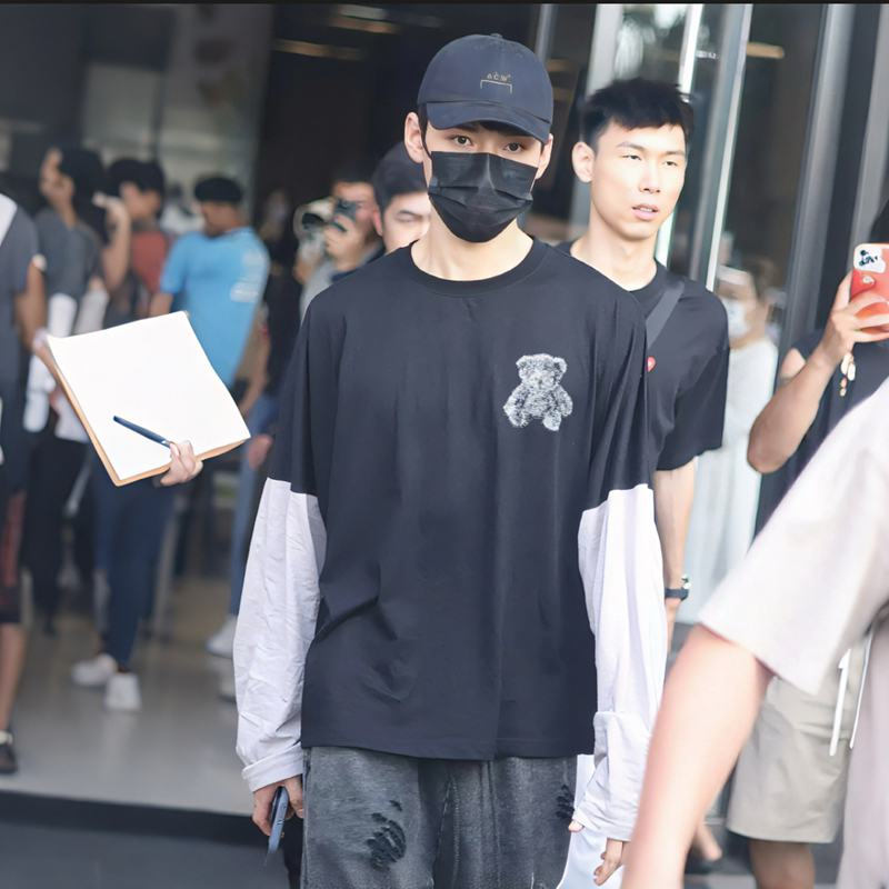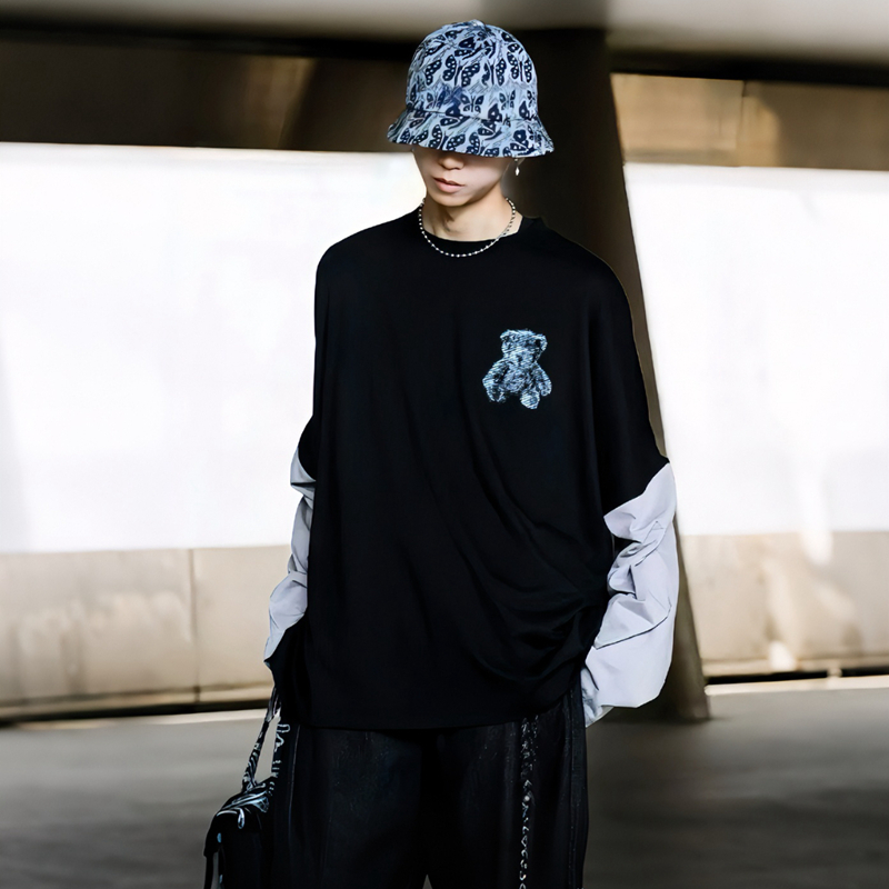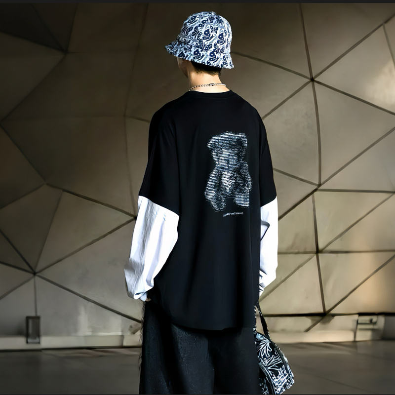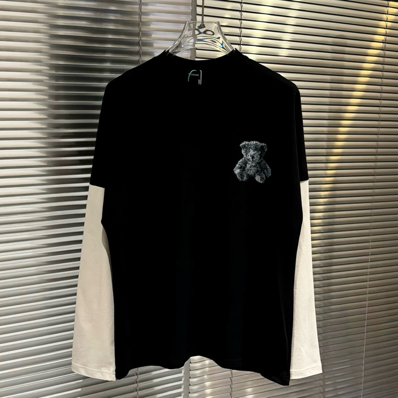 WE11DONE TRACK宋亚轩同款小熊印花假两件男女情侣圆领长袖T恤