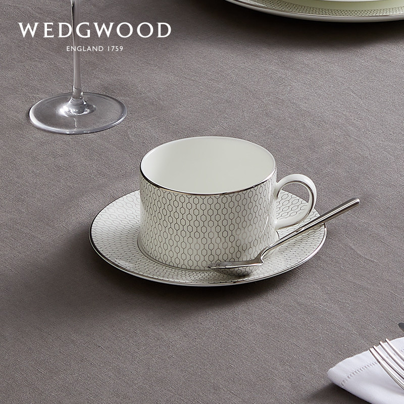 WEDGWOOD威基伍德白金&金色几何杯碟骨瓷欧式咖啡杯下午茶杯碟