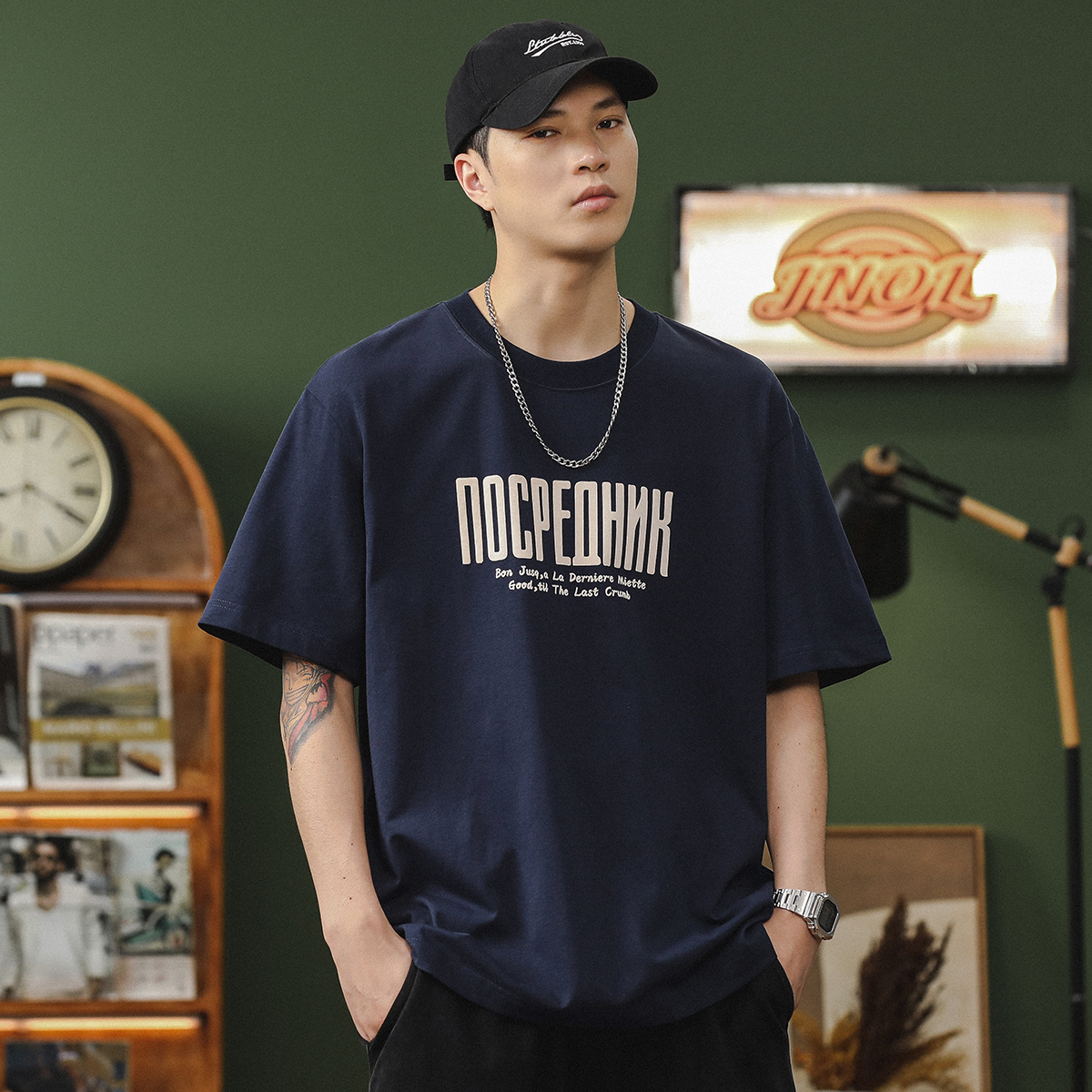 美式潮牌夏季男士t恤短袖2025新款重磅纯棉宽松大码男装t圆领体恤
