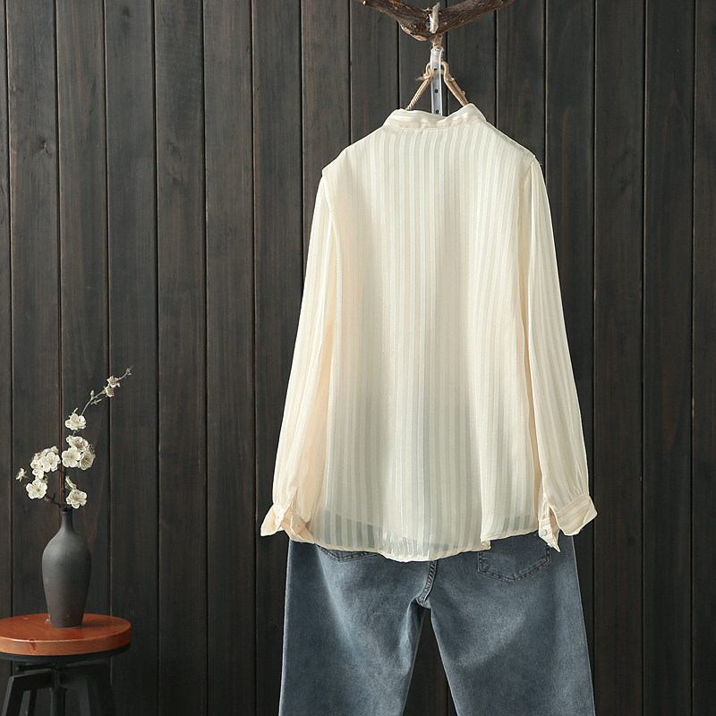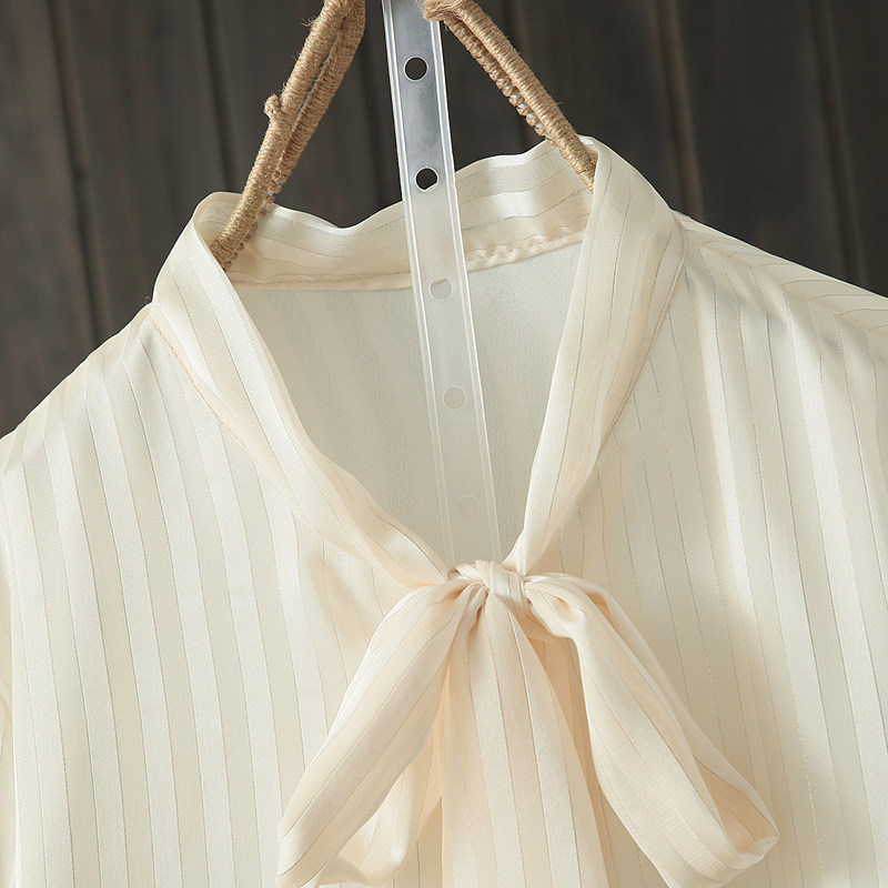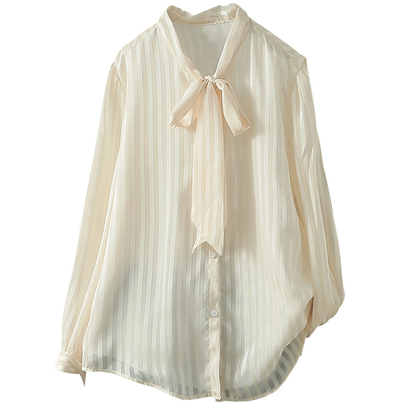 大码胖mm宽松飘带雪纺长袖衬衣