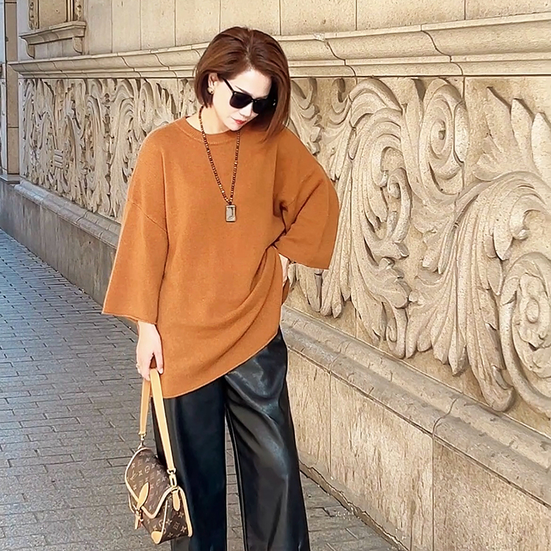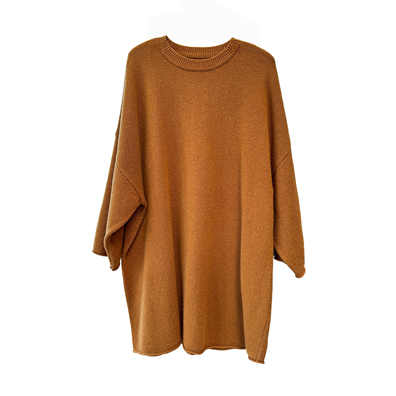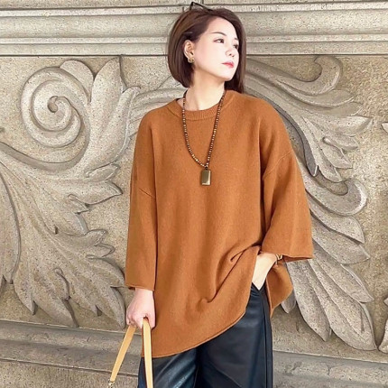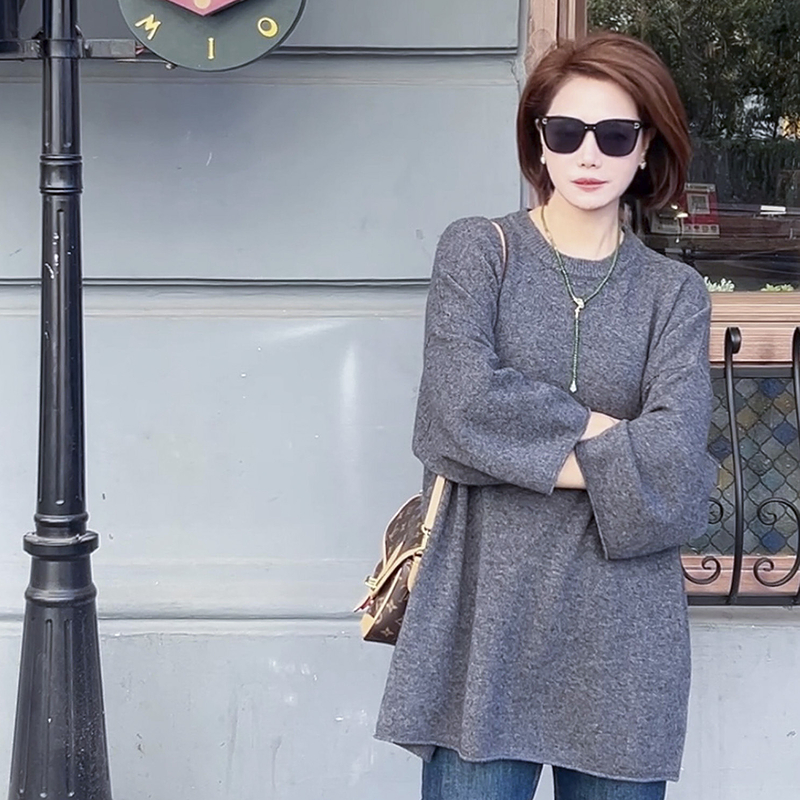 颜菱针织衫女2025秋冬新款100%羊毛宽松套头中长纯色毛衣Y9275