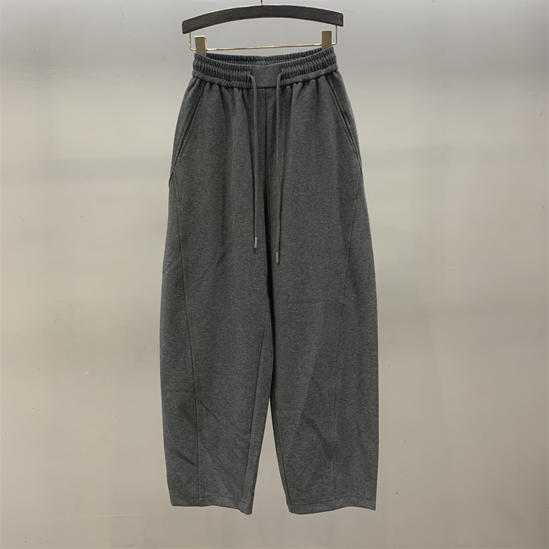 灰色休闲运动弯刀裤女阔腿拖地裤