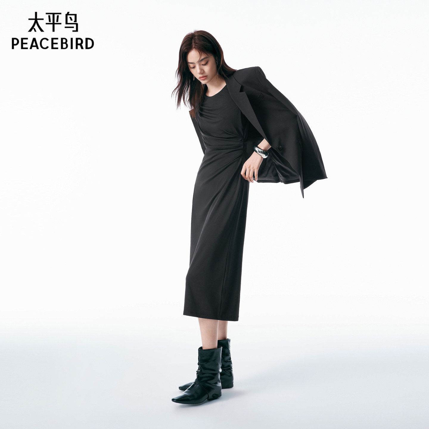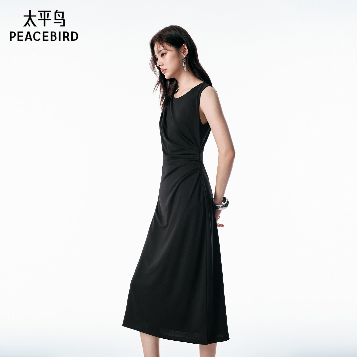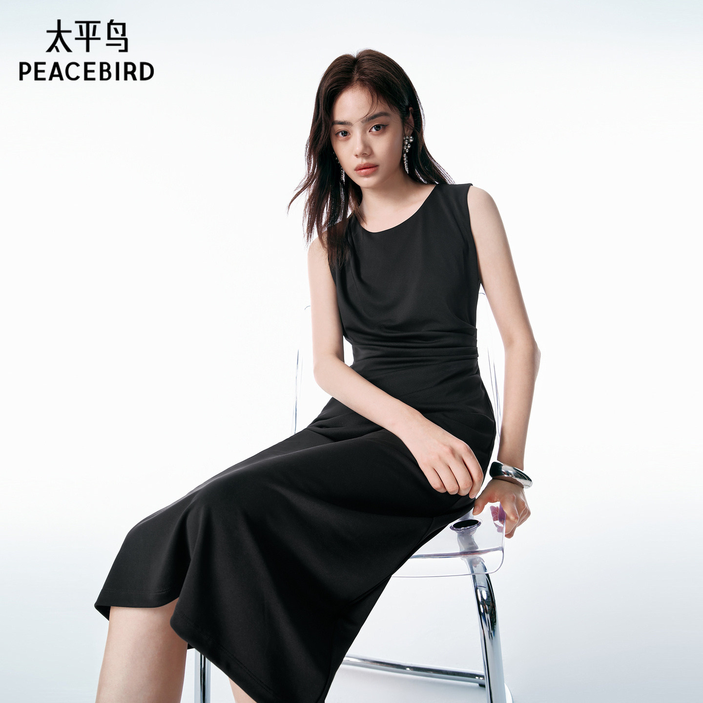 太平鸟通勤收腰黑色显瘦连衣裙女早春新款品质背心裙长裙立体剪裁