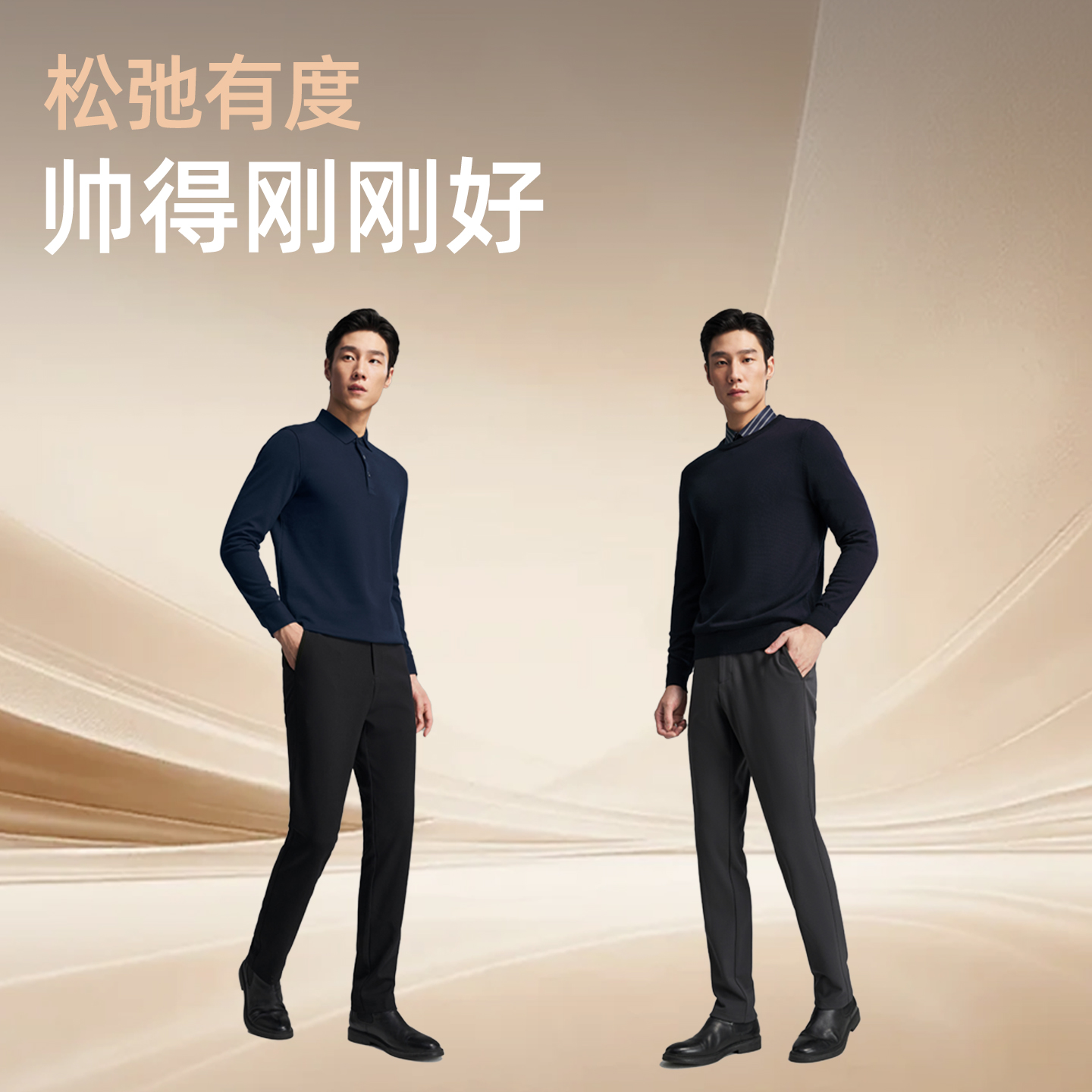 雅戈尔秋季绵羊毛休闲裤直筒新款
