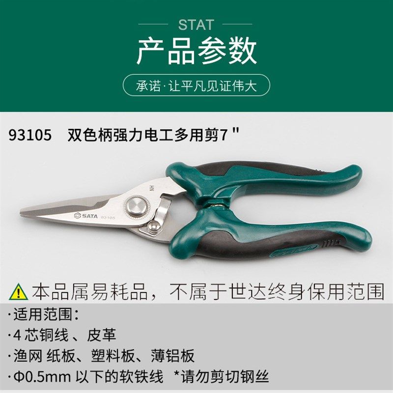 世达电工剪五金工具电子多用多功能剪电工电缆剪7线槽剪刀93105