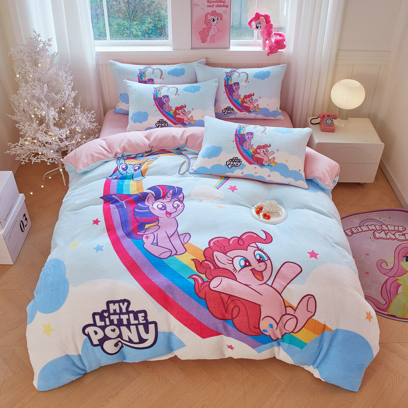 小马宝莉女孩加厚牛奶绒被套单件冬季加绒被罩珊瑚绒儿童三四件套