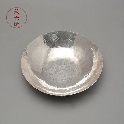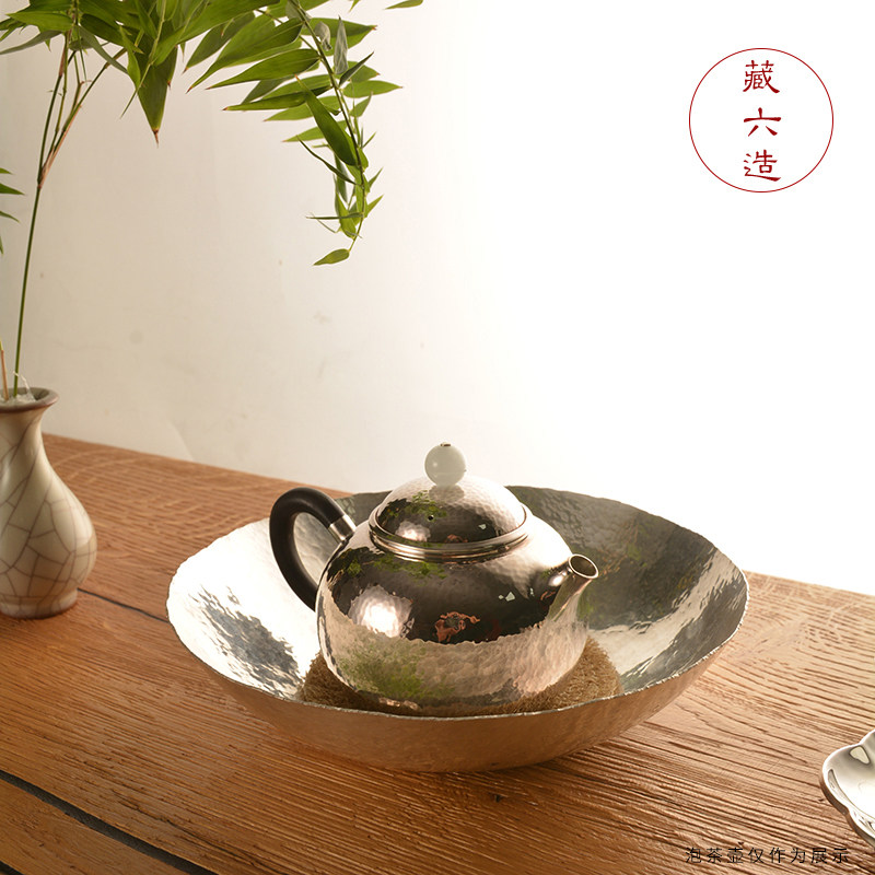藏六造 寿喜纯银壶承 纯银999纯手工带盖茶洗功夫茶具