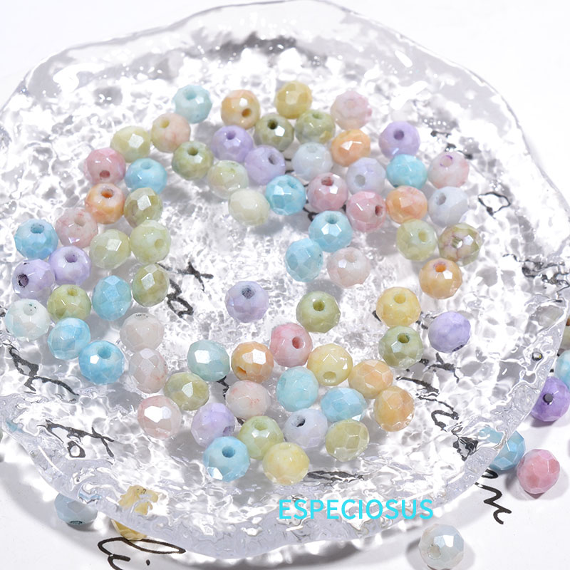 6mm扁圆瓷玉料水晶散珠子diy饰品配件水墨彩色车轮珠手链串珠隔珠