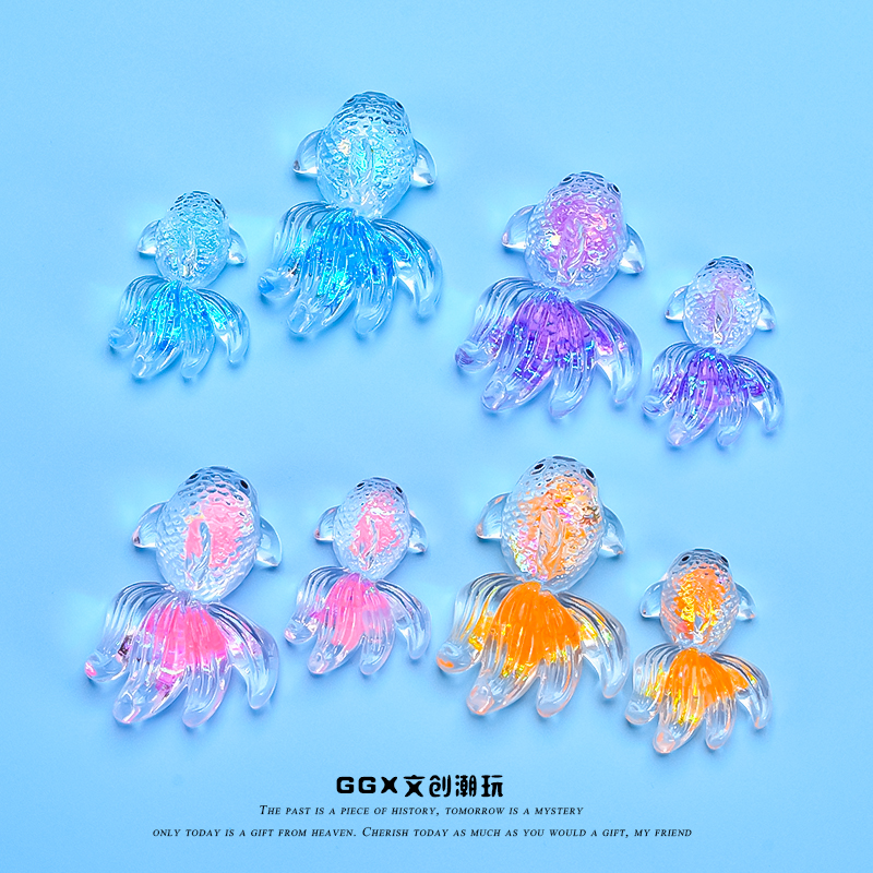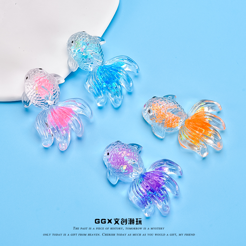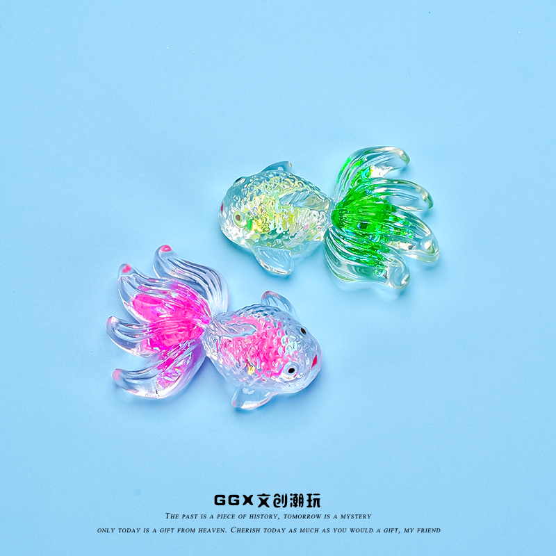 新款高透细闪亮片夜光金鱼高颜值桌面摆件儿童过家家玩具动物模型