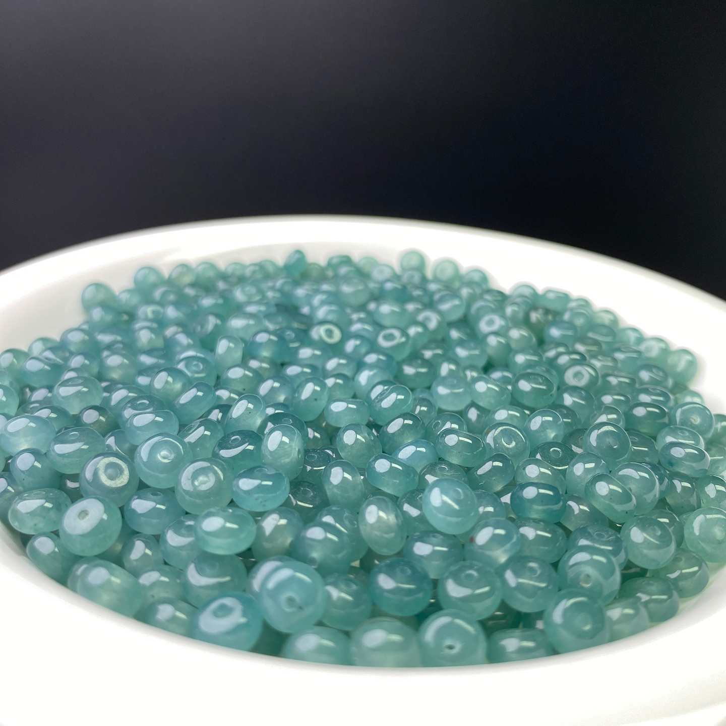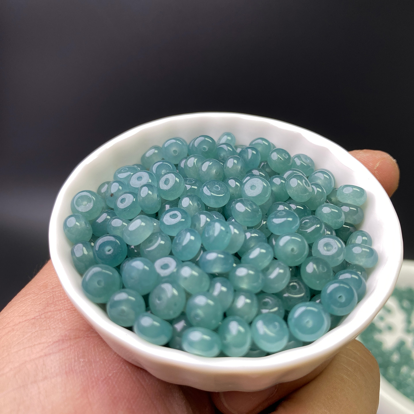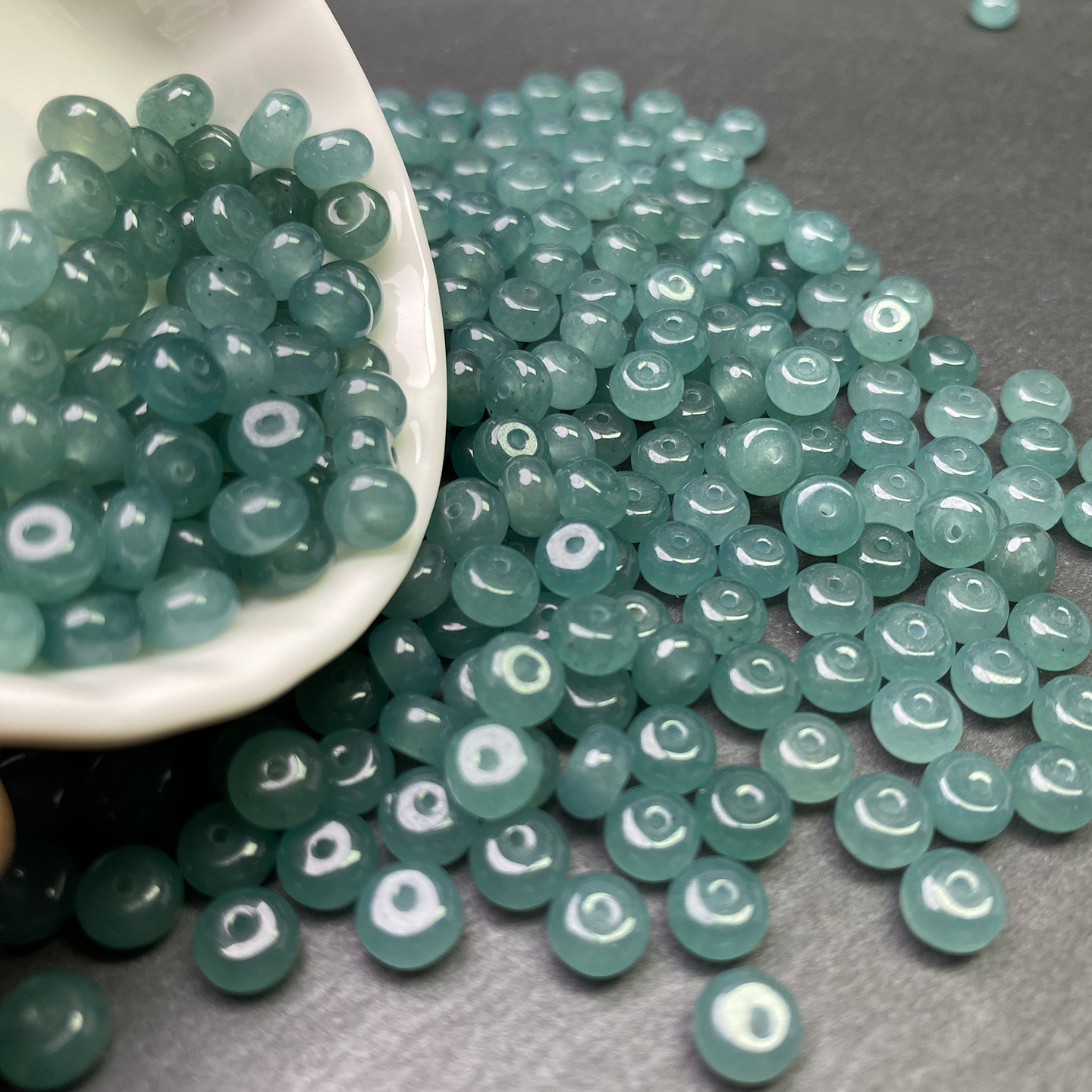 冰种翡翠色蓝水算盘珠玉珠子散珠diy手工串珠手链项链饰品配件