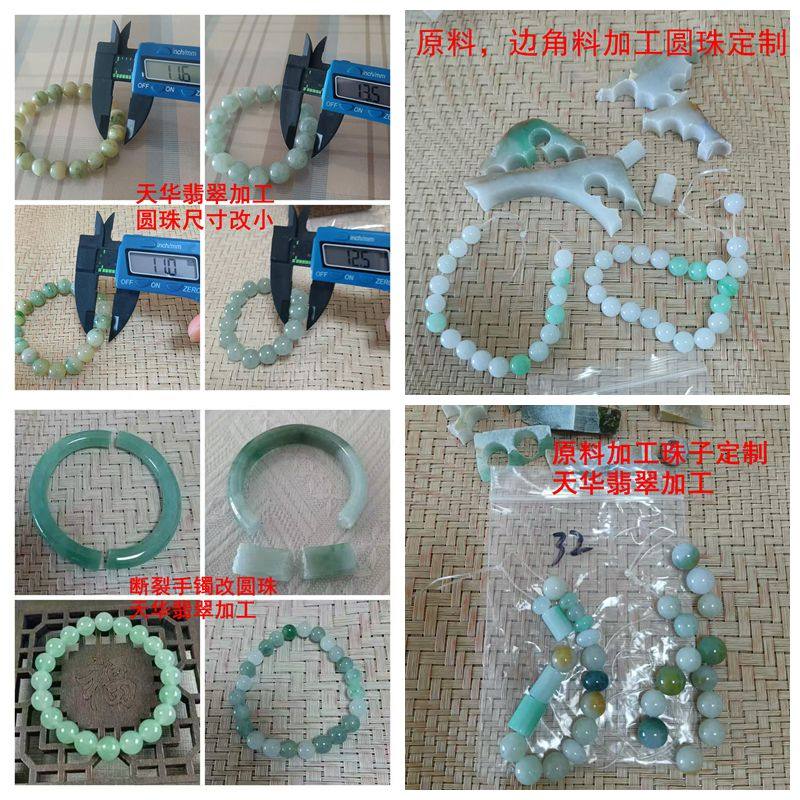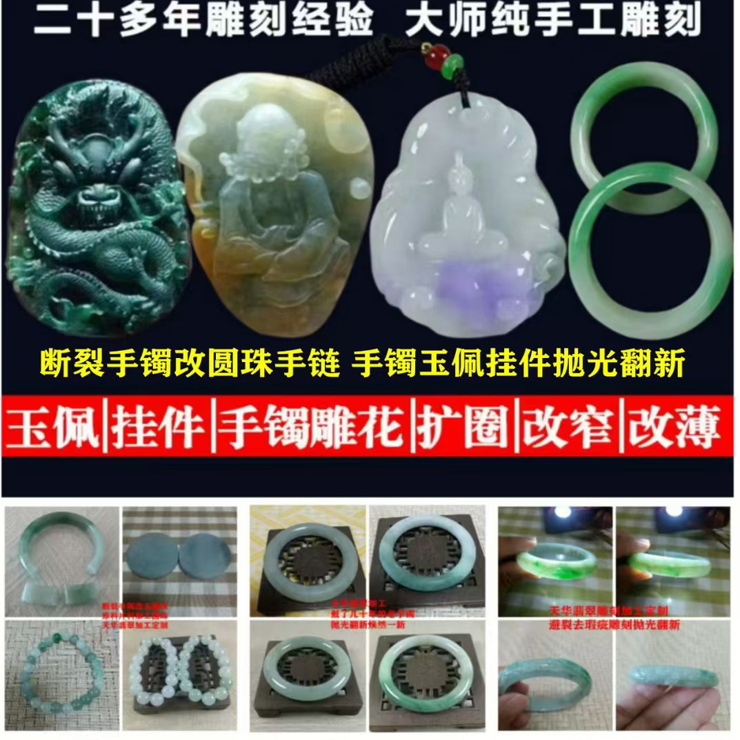 翡翠原料原石加工手镯圆珠玉佩挂件雕刻定制断裂手镯改圆珠抛光