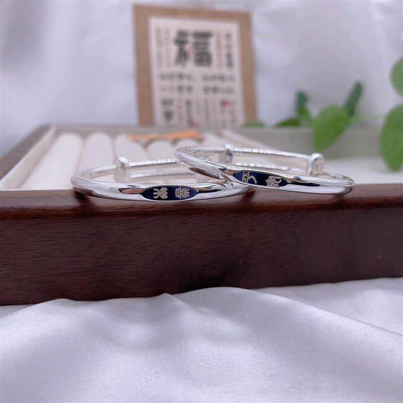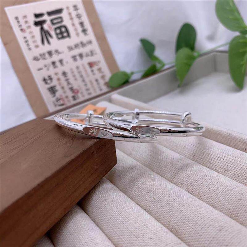 新款宝宝纯银手镯S999足银镯子平安喜乐小孩儿童婴儿百天满月周岁
