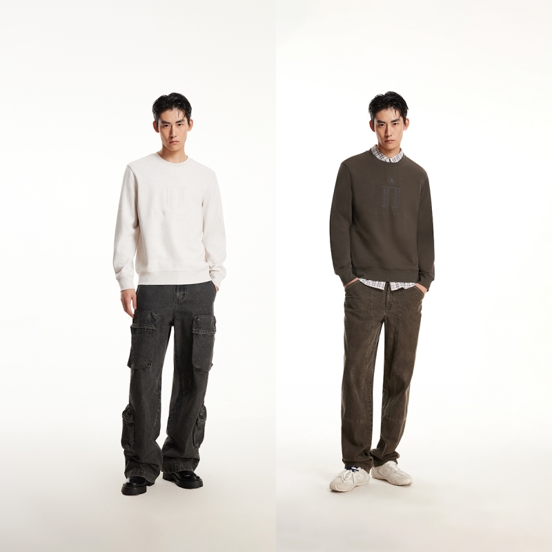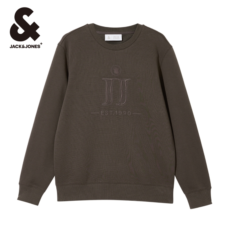 杰克琼斯秋季款常规罗纹圆领胸前字母logo刺绣长袖卫衣男款男装