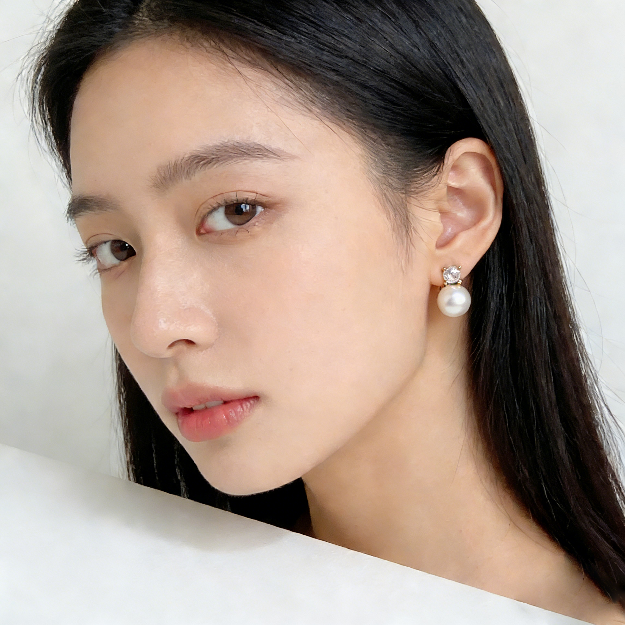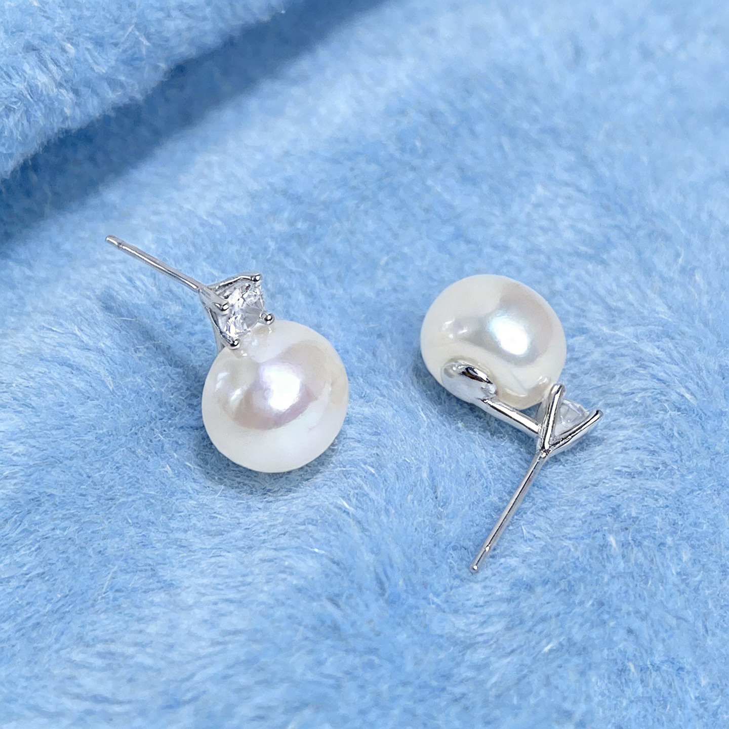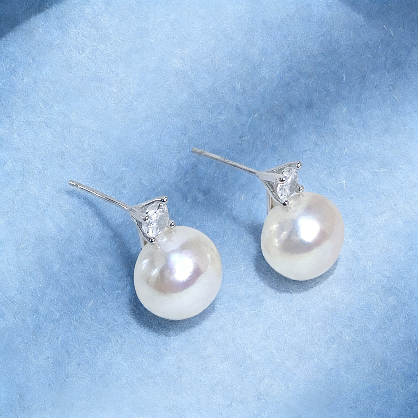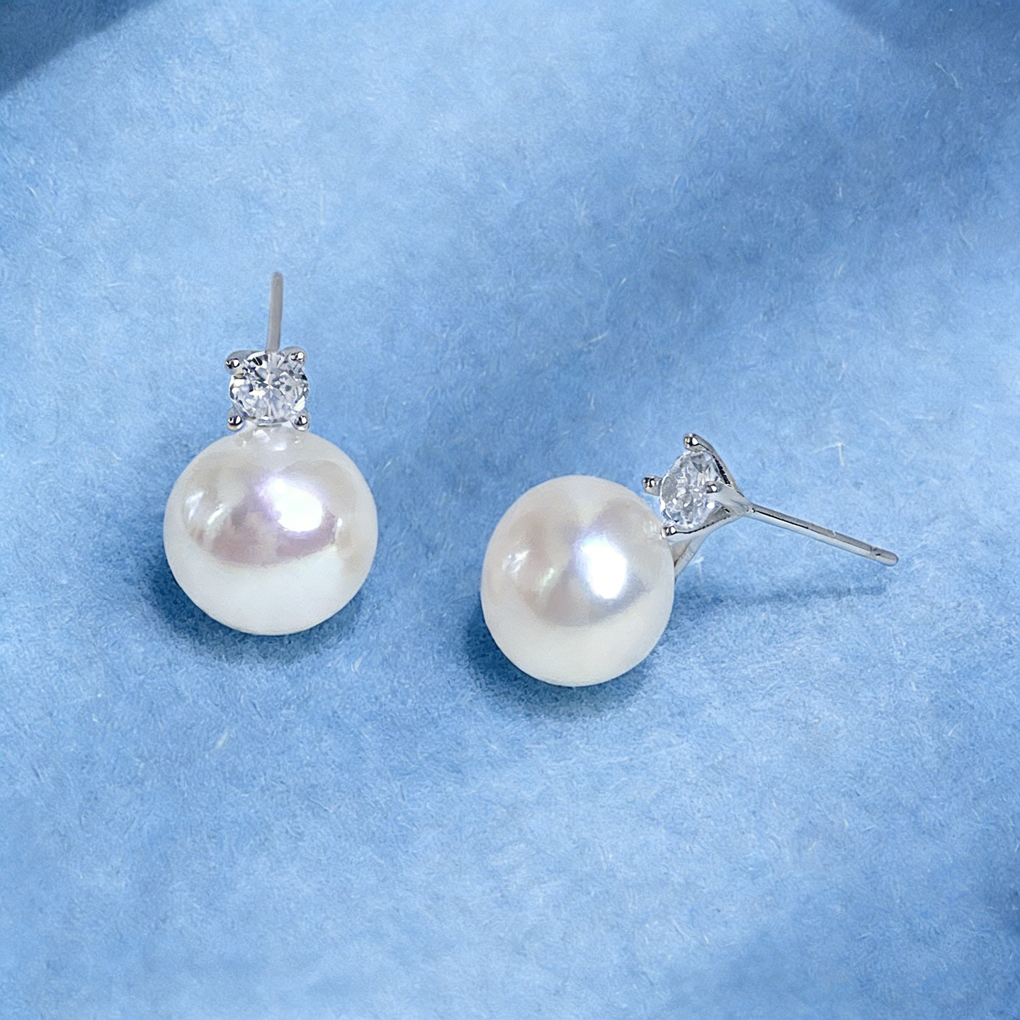6A强光基本无瑕天然淡水珍珠耳环戴妃王妃款S925纯银诸暨耳钉饰品