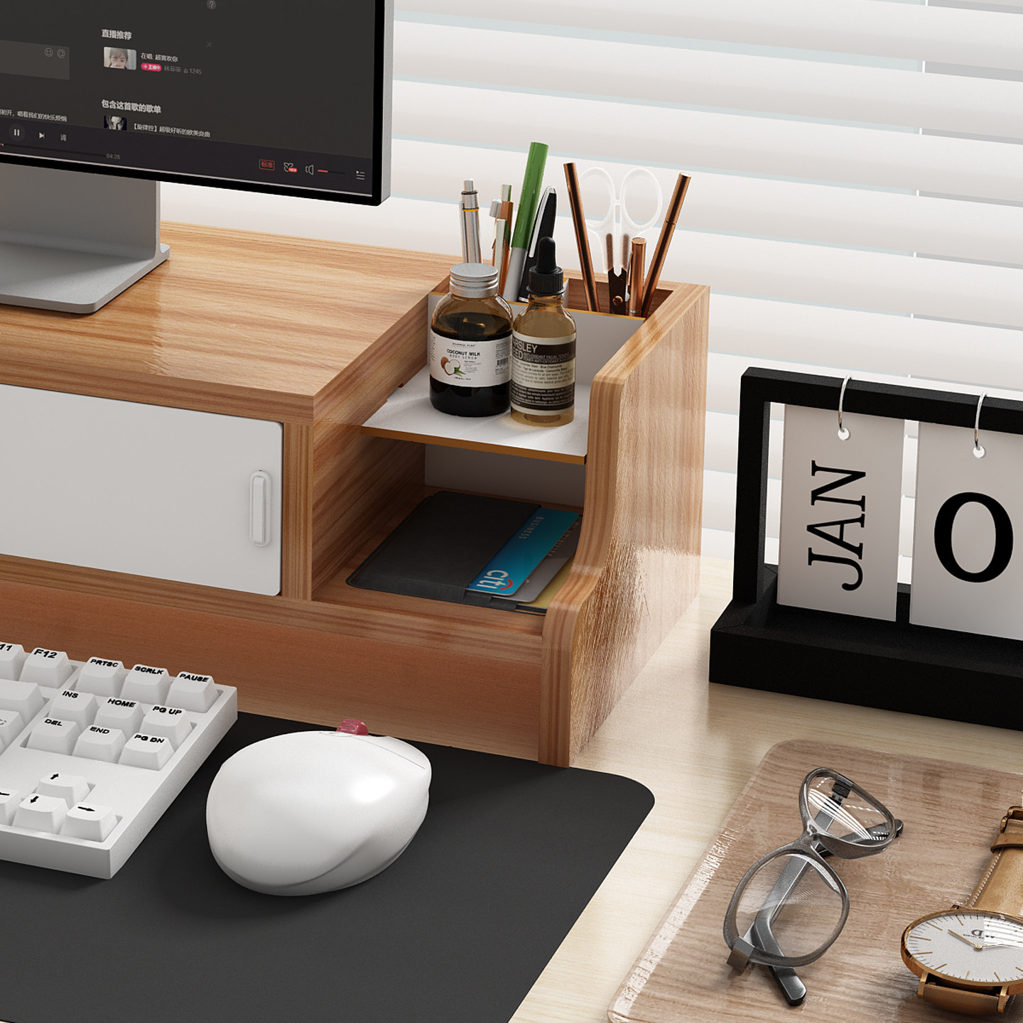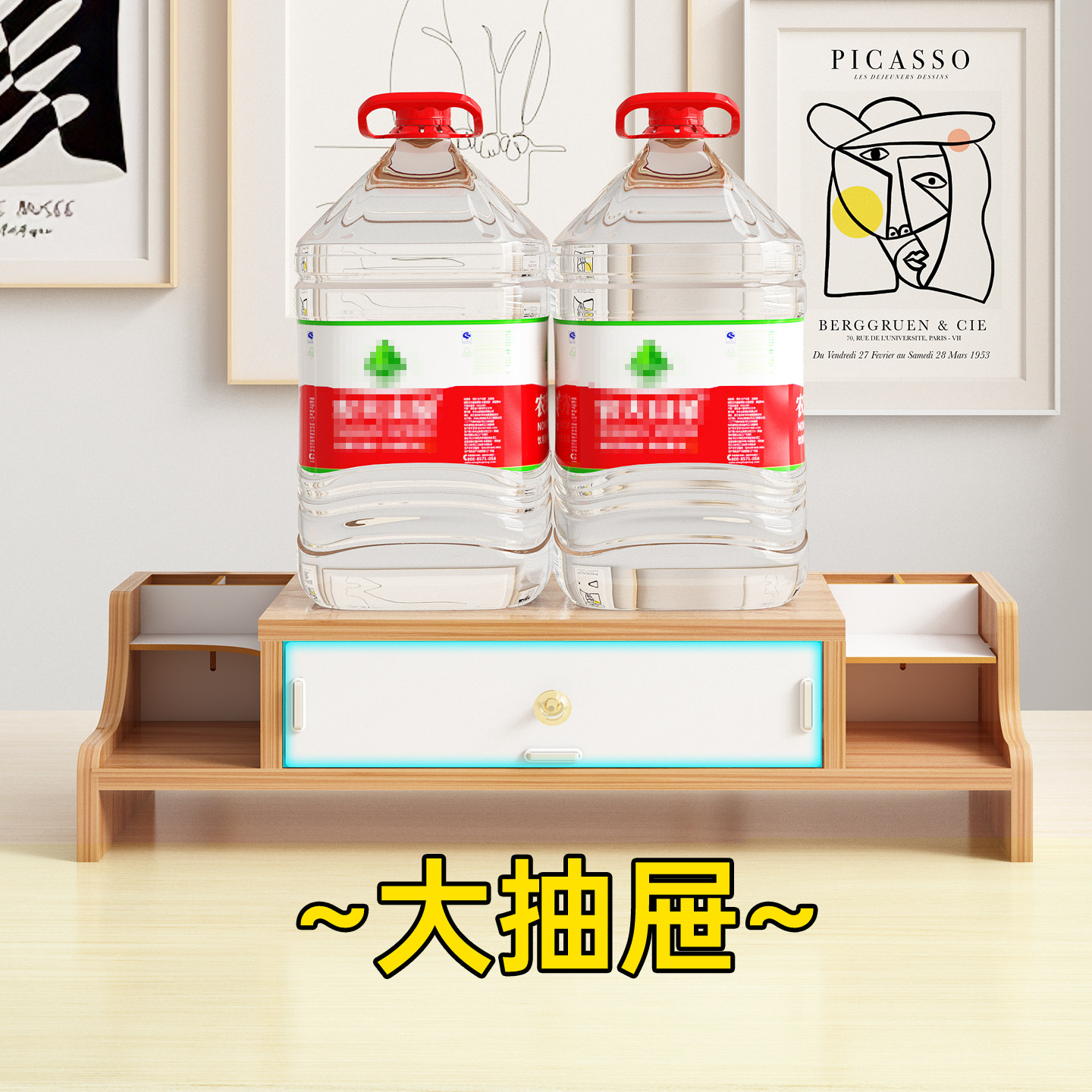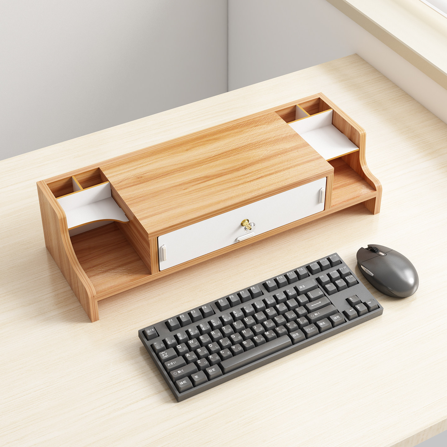 台式电脑增高架双层抽屉式