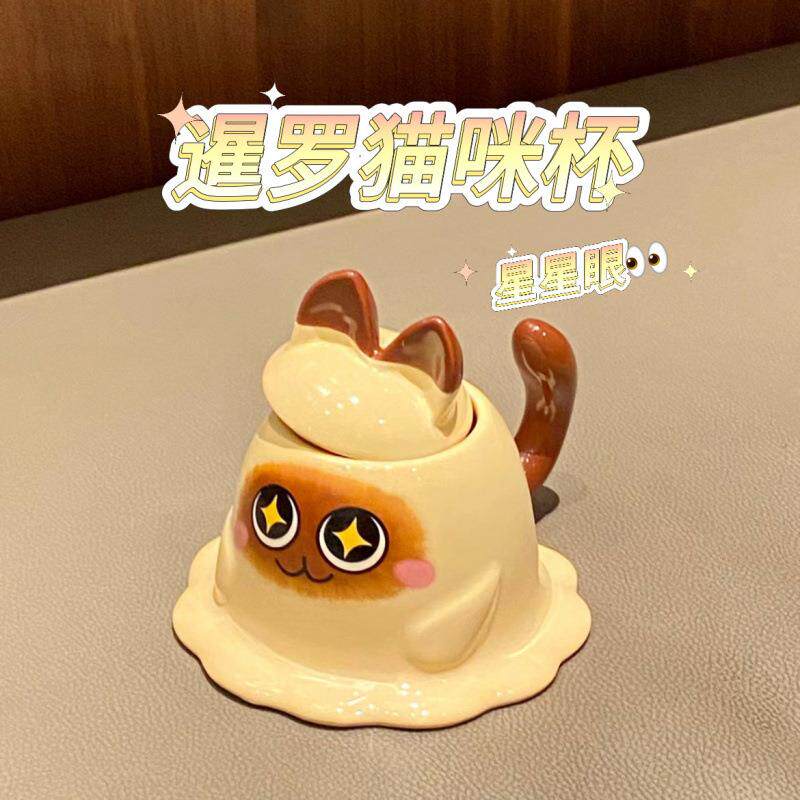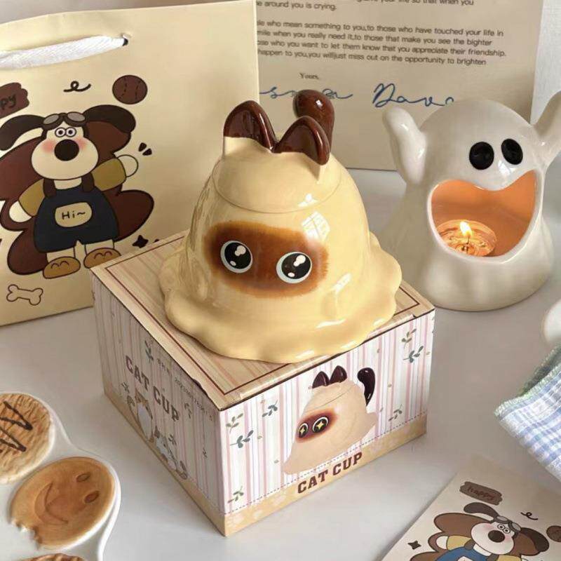 可爱暹罗猫喵咪杯带盖马克杯送女生闺蜜创意in