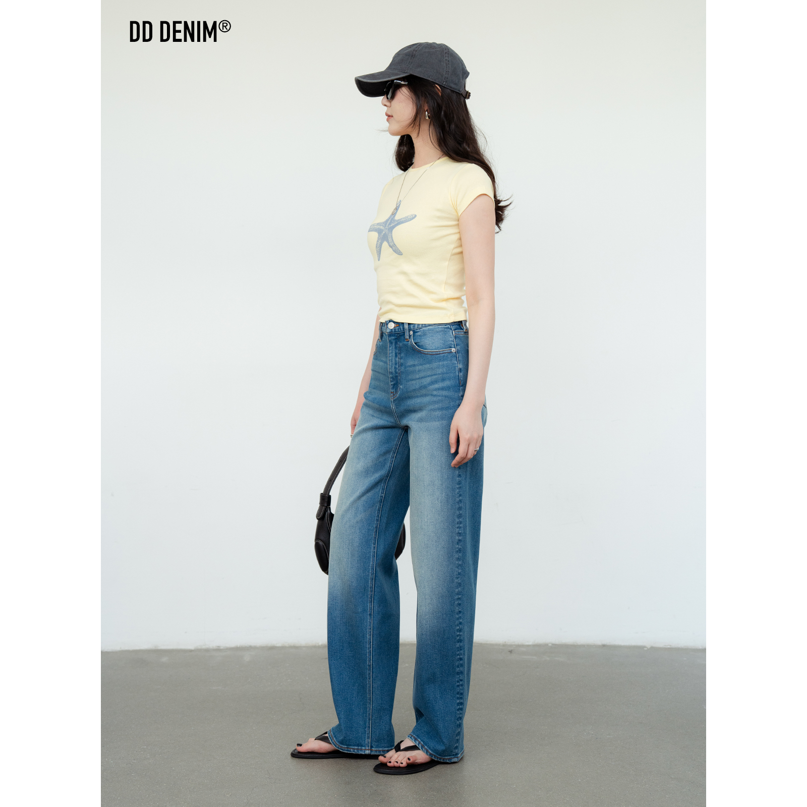 DD「极简经典」25春夏高腰窄版直筒裤女显瘦弹力宽松牛仔拖地长裤