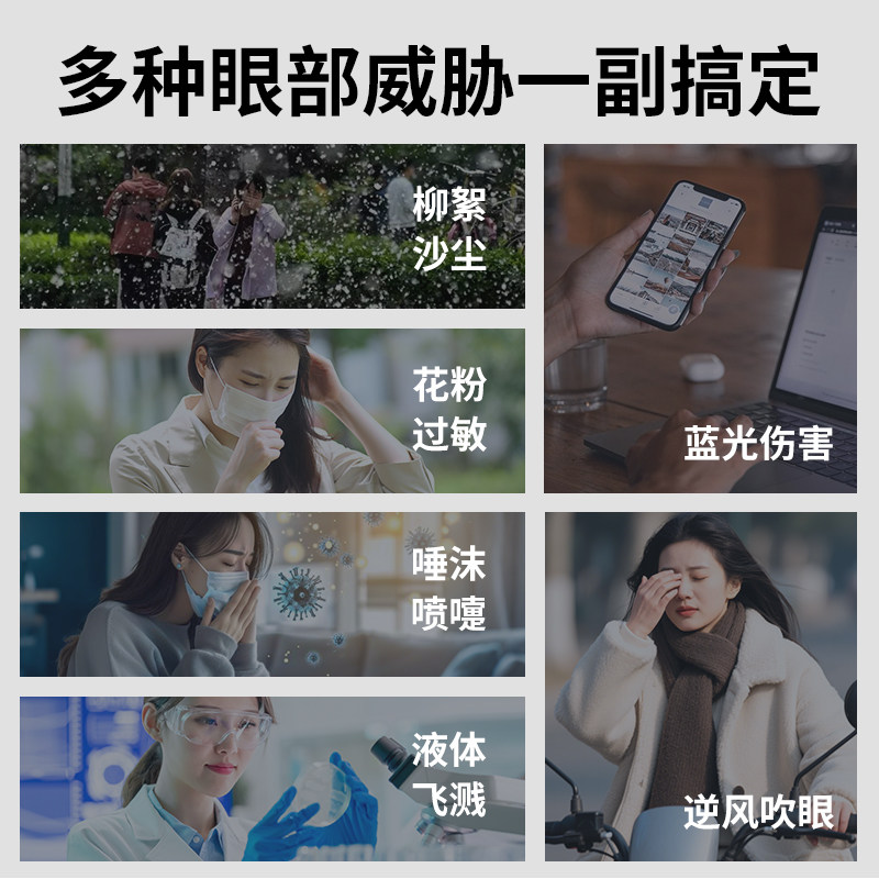 防雾防风沙护目镜女防蓝光术后防花粉飞沫灰尘过敏骑行防护眼镜男