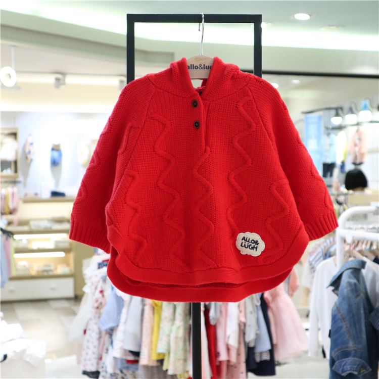allo阿路韩版童装2024冬季洋气大红套头上衣可爱外套针织毛衣681