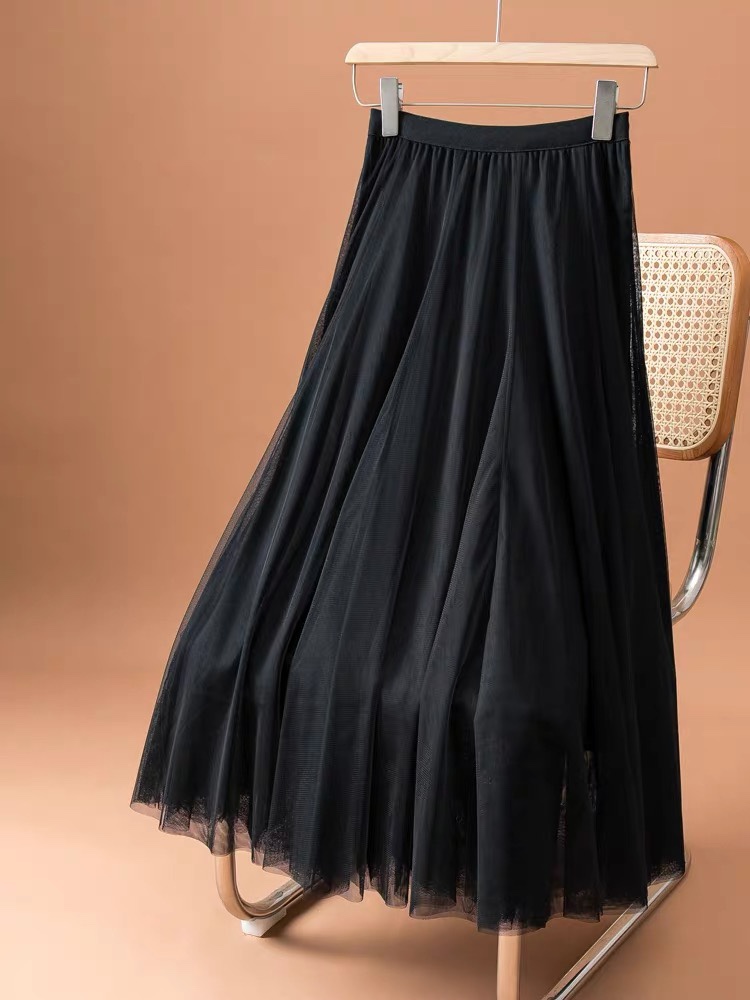 网纱半身裙女纱裙小个子短裙夏季高级感a字长裙新款中长长款裙子