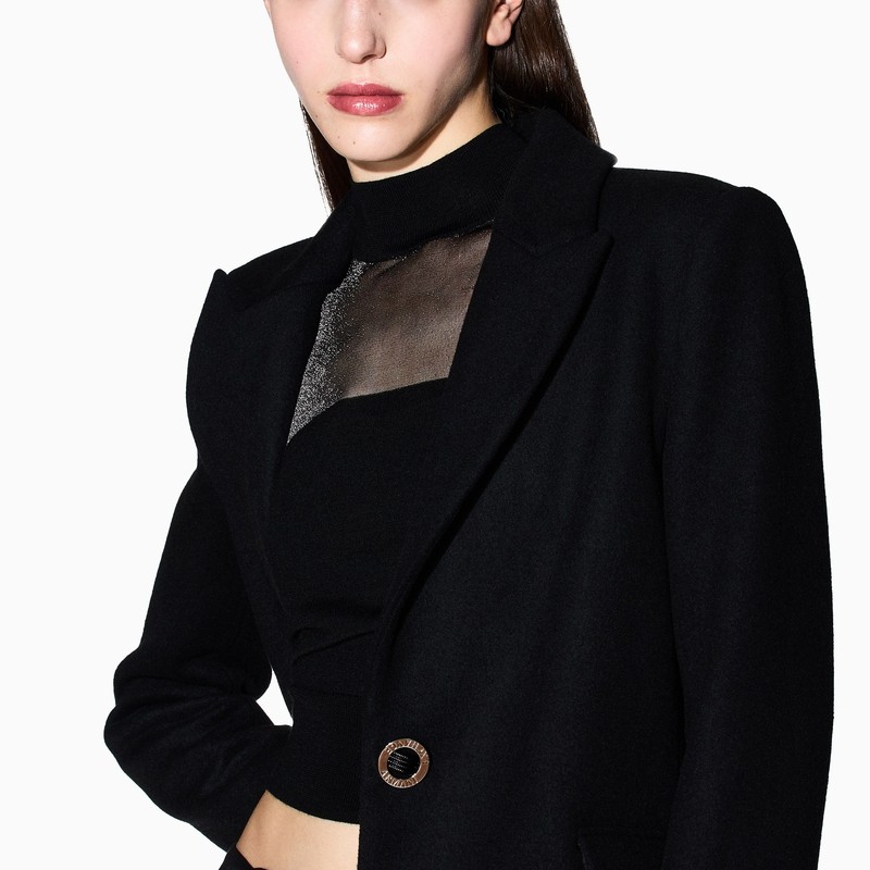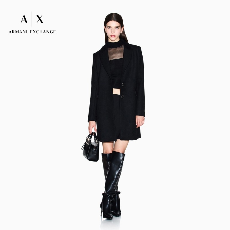 ARMANI EXCHANGE/阿玛尼冬季新款女士翻领绵羊毛宽松老钱风短大衣