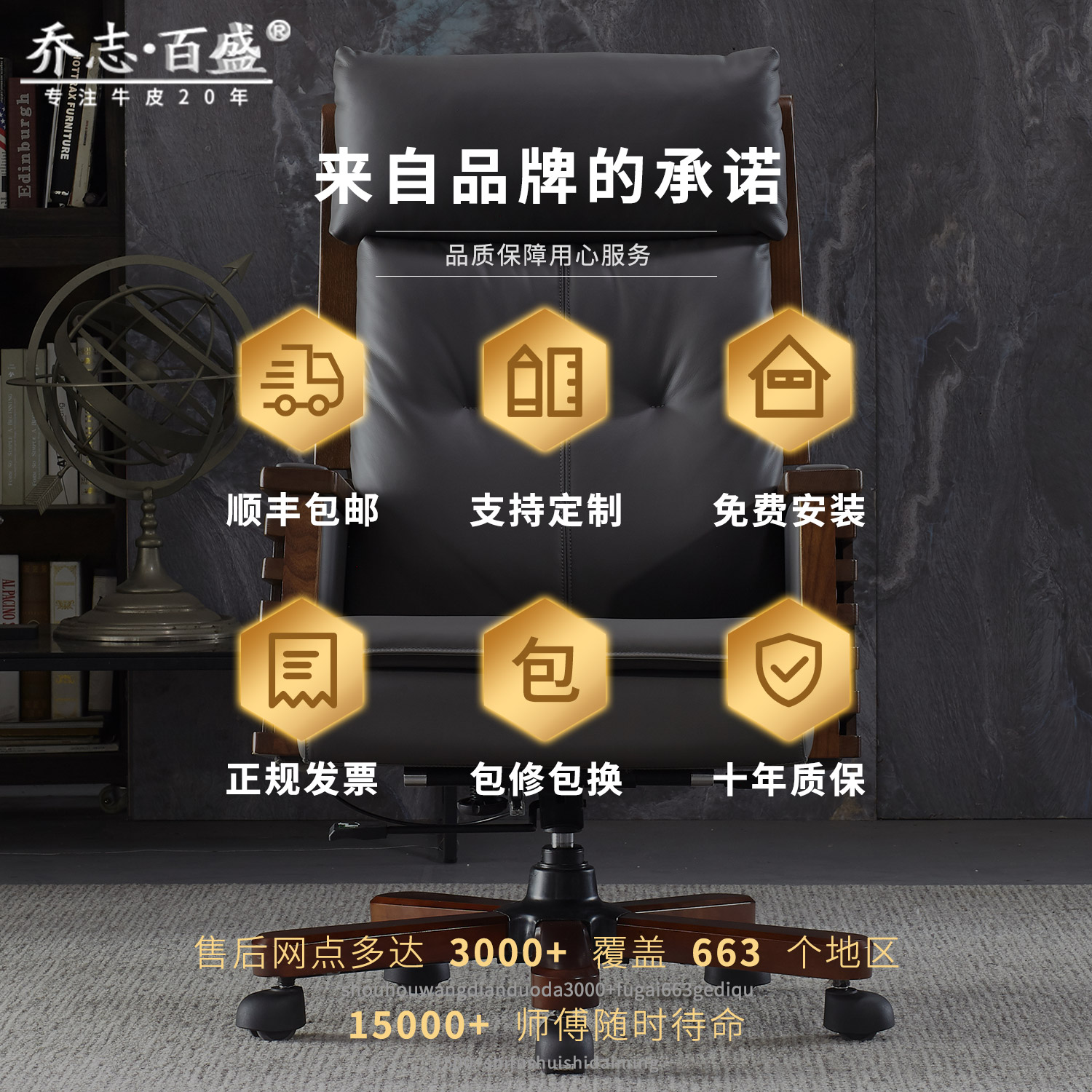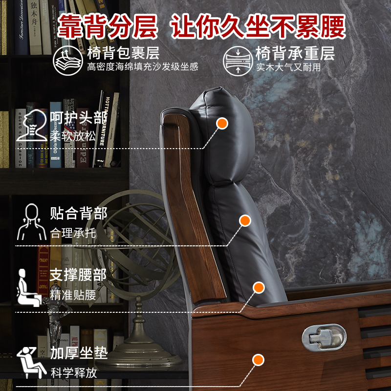 实木老板椅办公室可躺真皮家用电脑椅子舒适久坐牛皮大班座椅