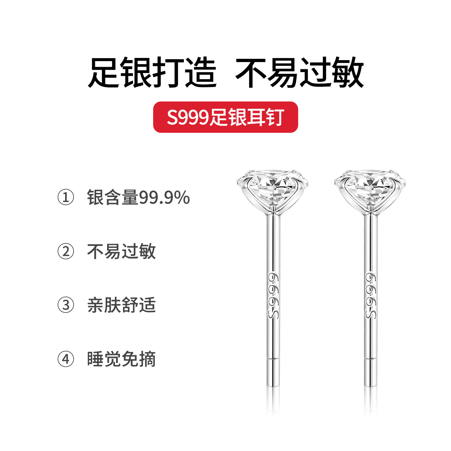 Lnieer999纯银养耳洞钻石耳钉女