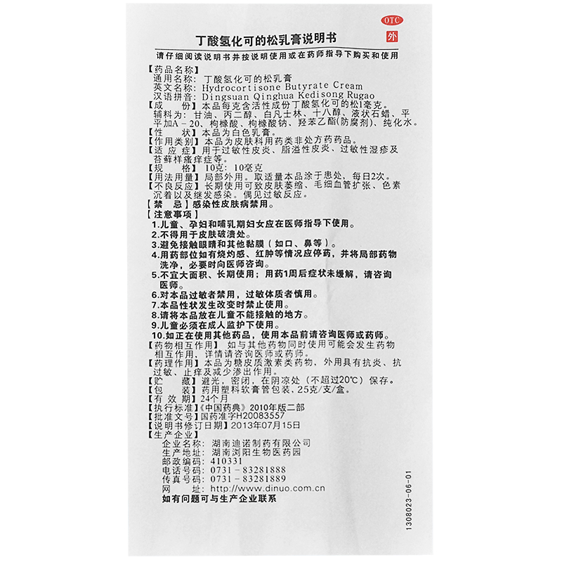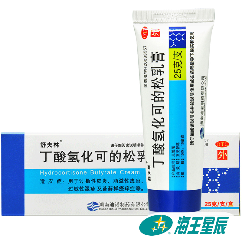 【舒夫林】丁酸氢化可的松乳膏0.1%*25g*1支/盒过敏性皮炎湿疹脂溢性皮炎瘙痒症