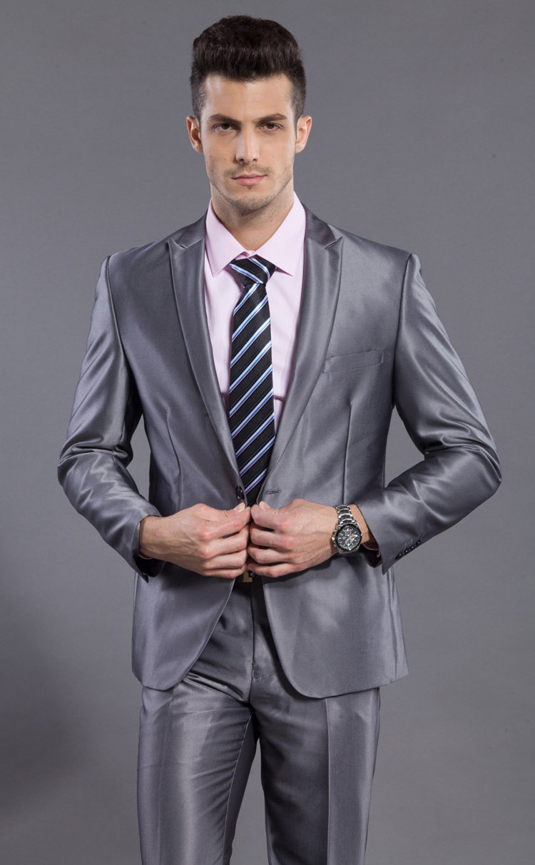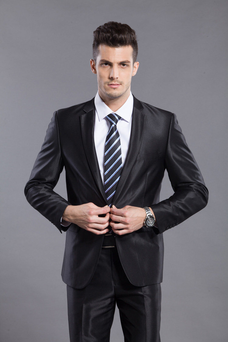 西服套装男士韩版修身休闲小西装亮黑色商务职业正装新郎结婚礼服