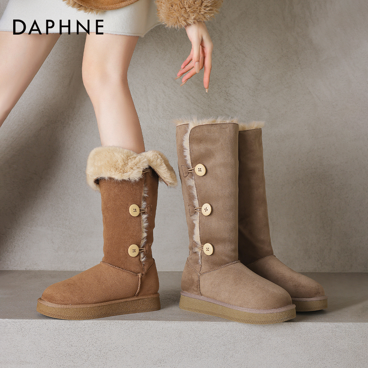 达芙妮雪地靴女款2025新款冬季女鞋加绒加厚保暖大棉鞋子长筒高筒