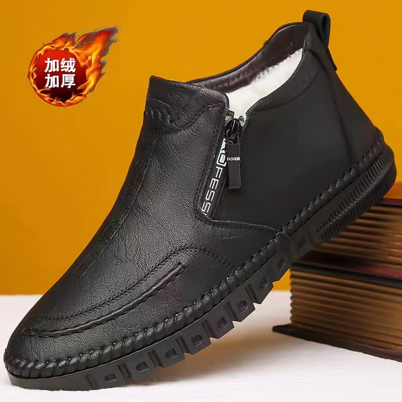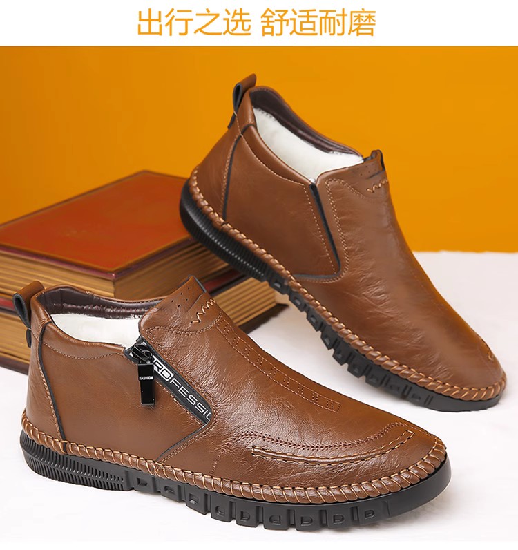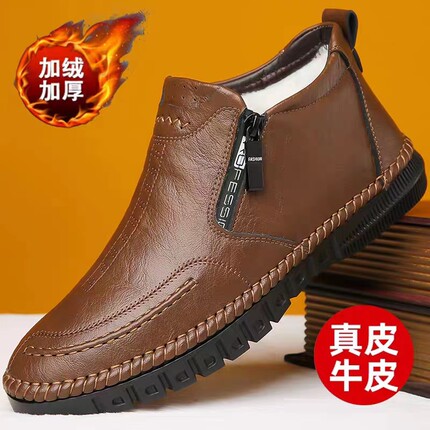 真皮男士雪地靴冬季加厚羊毛高帮鞋中老年爸爸保暖棉鞋休闲皮鞋男