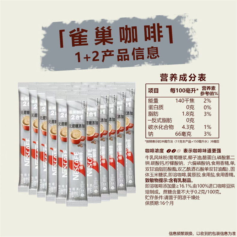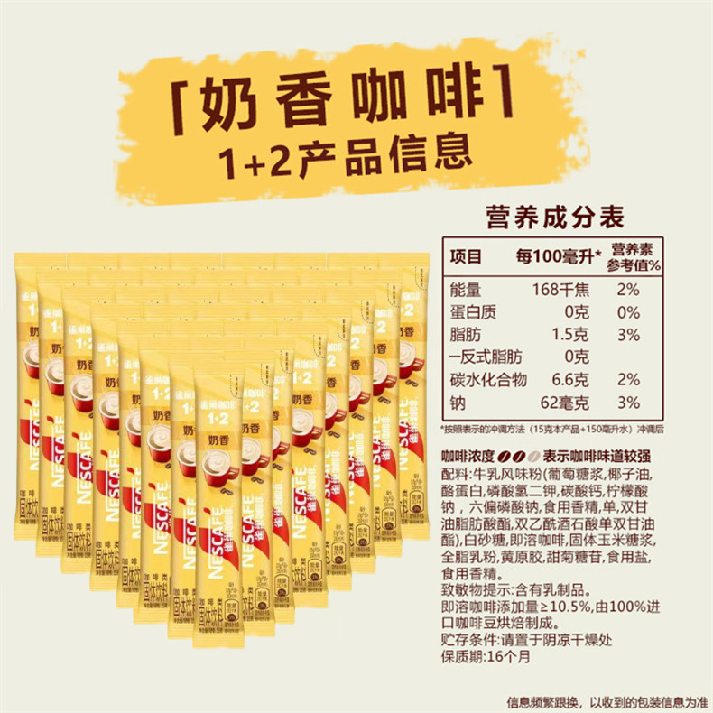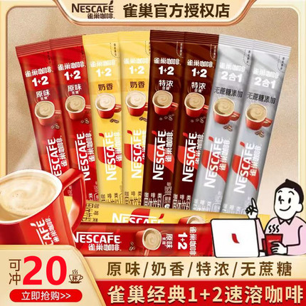 Nestle雀巢1+2咖啡20条三合一速溶粉4口味无添加蔗糖奶香拿铁原味