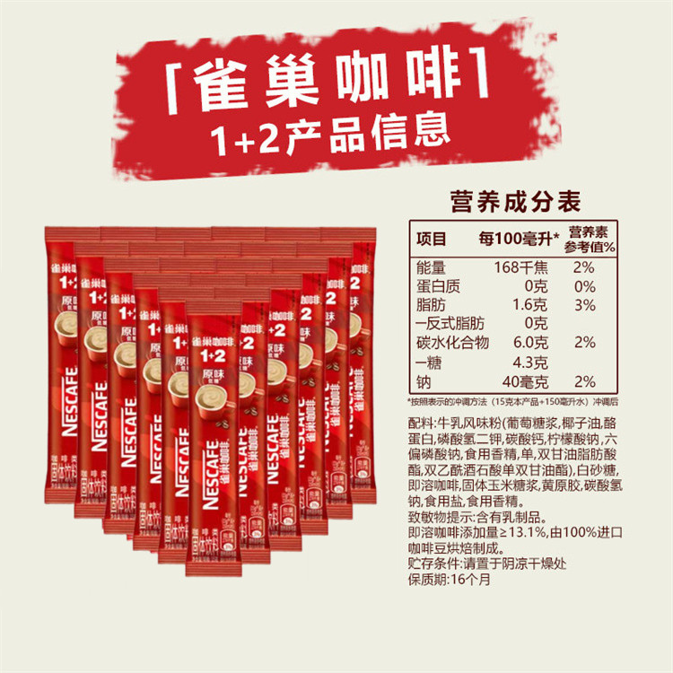 雀巢1+2咖啡20条三合一速溶粉
