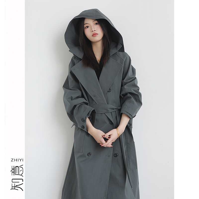 【2.5新】2025春季高级感可拆卸帽长款风衣外套女松弛感休闲大衣