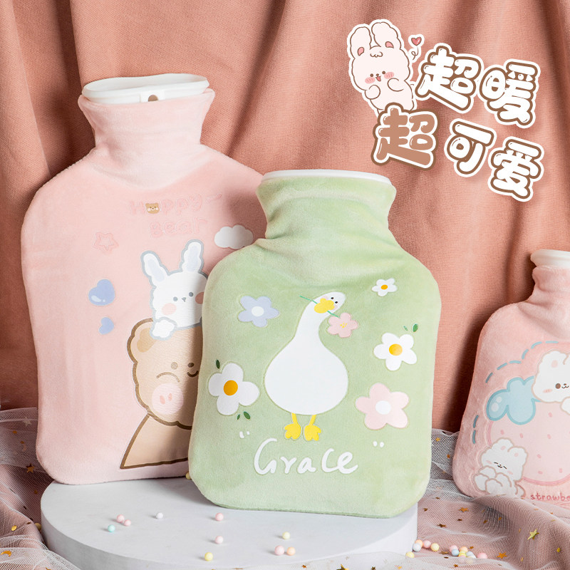 卡通热水袋注水加厚防爆敷肚子暖手脚被窝专用女生可爱毛绒暖宝宝