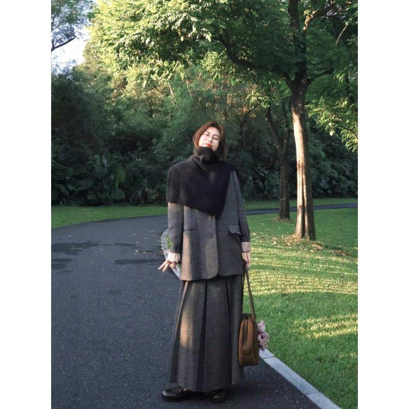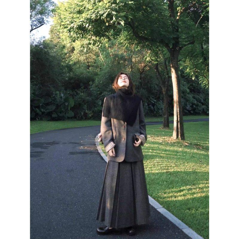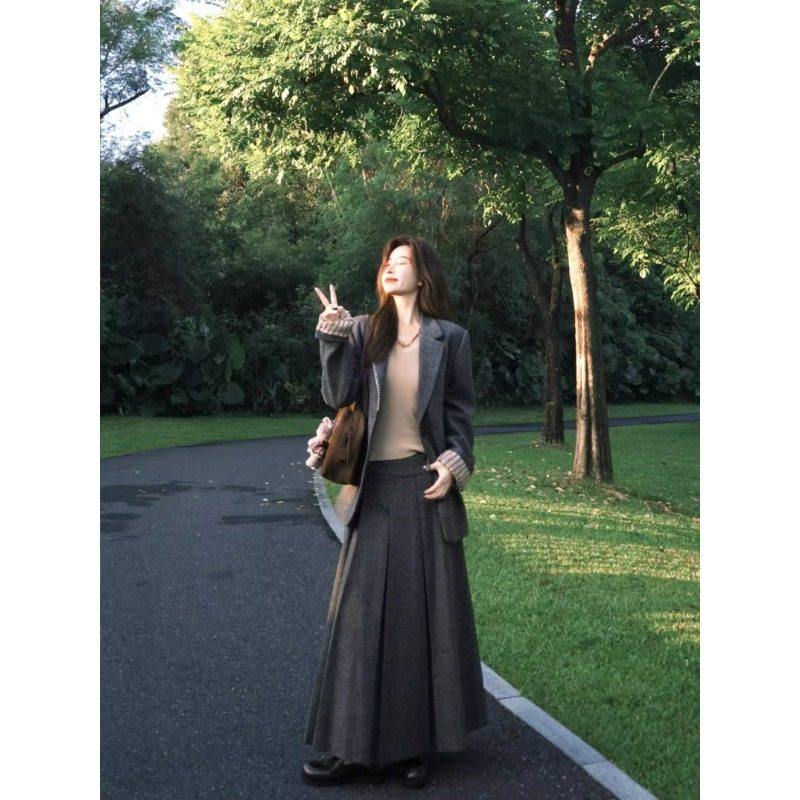 韩系大码女装胖mm秋冬显瘦呢子西装裙子两件套毛呢西服半身裙套装