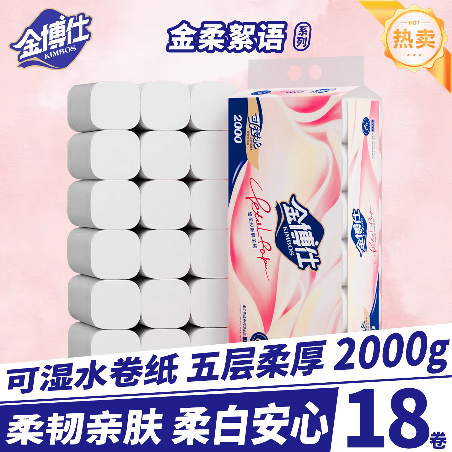 金博仕无芯卷纸18卷五层柔加厚2000g卫生纸可湿水超柔韧大卷筒纸