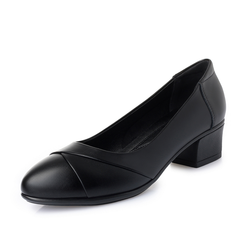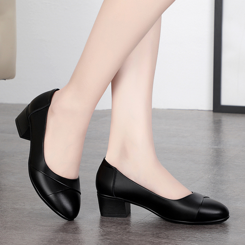 妈妈鞋子真皮轮胎软底单鞋女舒适春秋新款粗跟防滑中老年皮鞋4cm