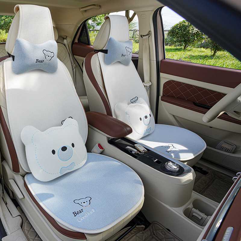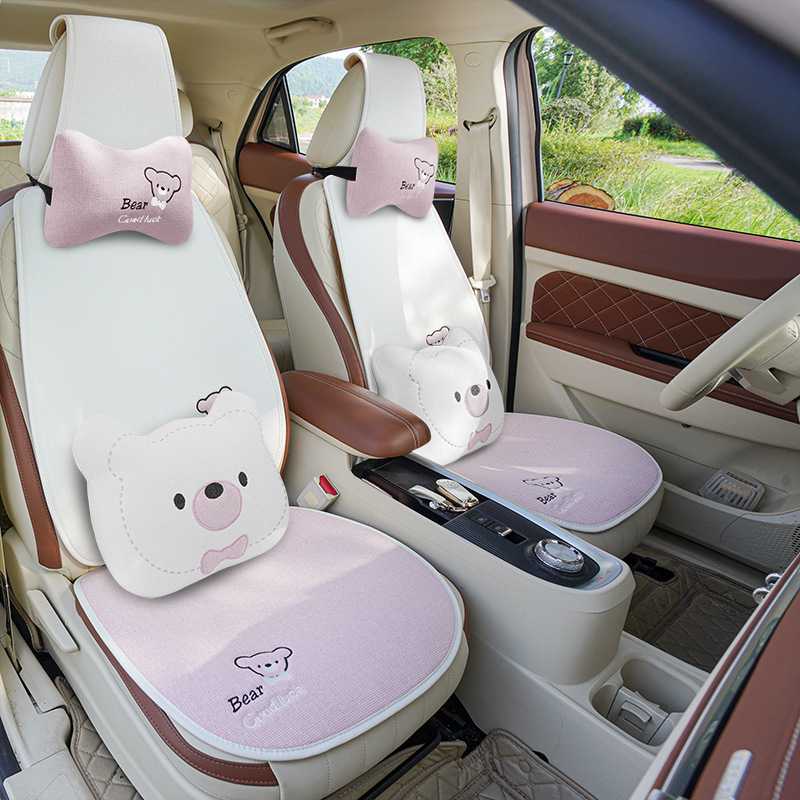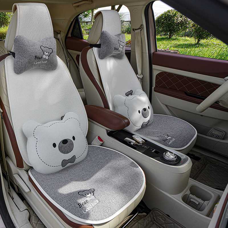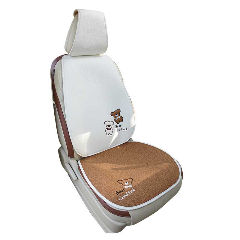 新款直销可爱熊亚麻汽车坐垫四季通用透气防滑单片女简约款卡通后